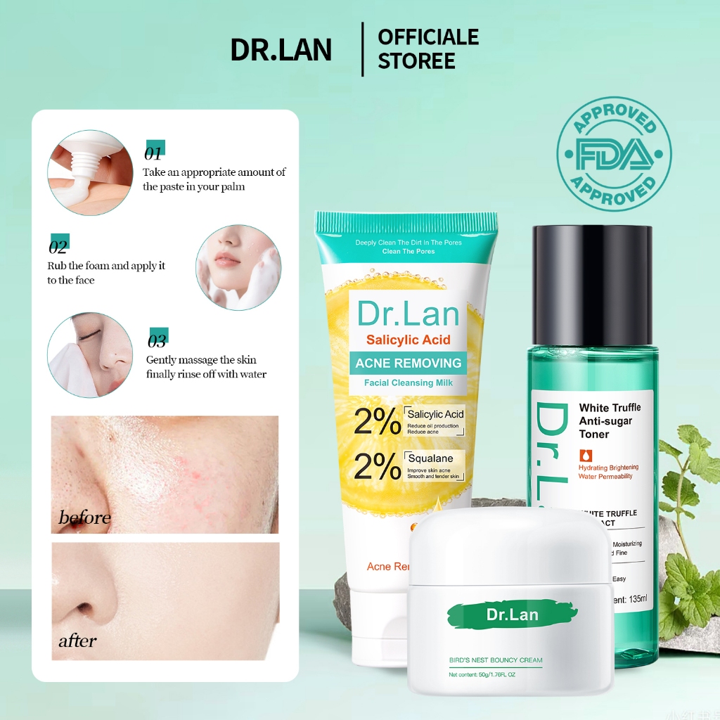 Dr. Lan Acne Treatment Skincare Set--Facial Acne Treatment Toner Cleanser Anti-Wrinkle Cream