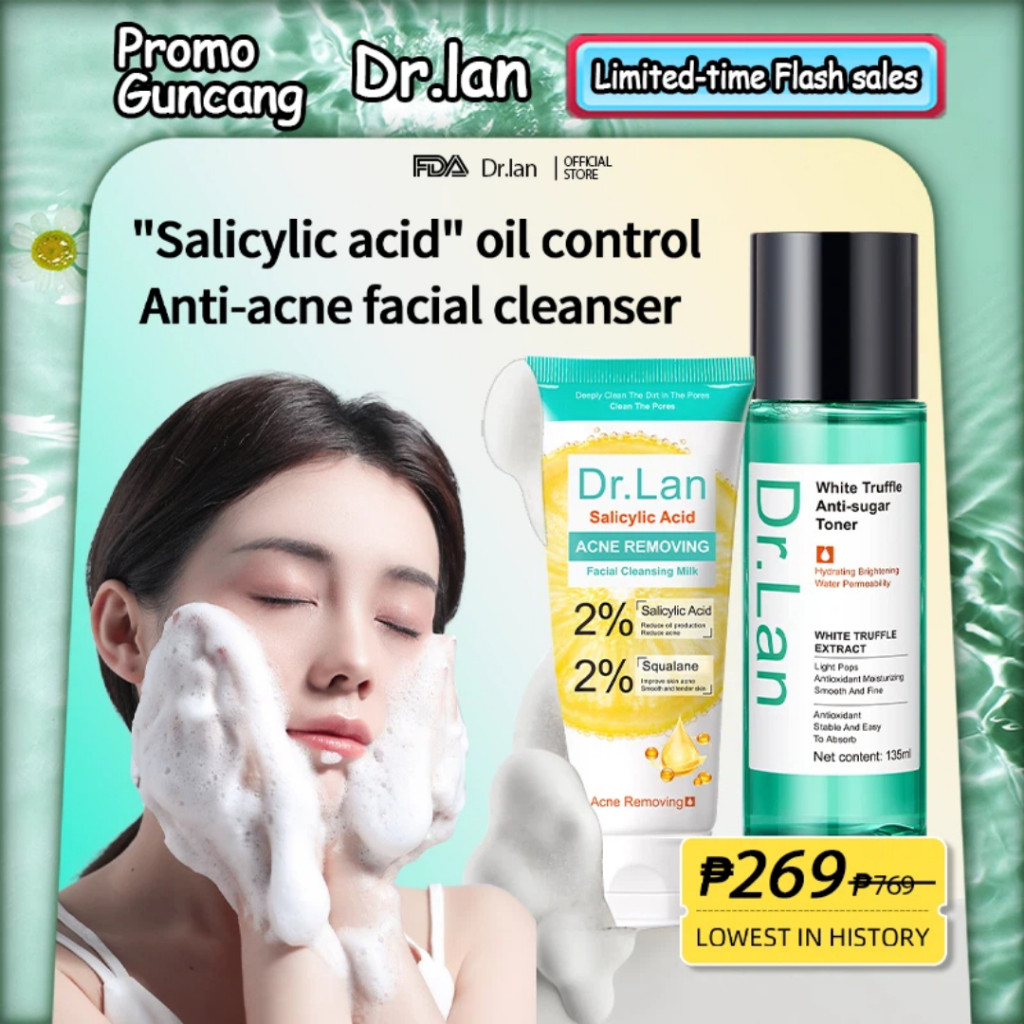 Dr.Lan Salicylic Acid Facial Cleanser&Toner Oil Control Soothing Repair Acne Treatment 100g+135ml