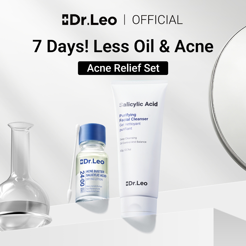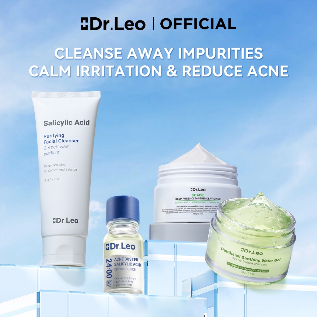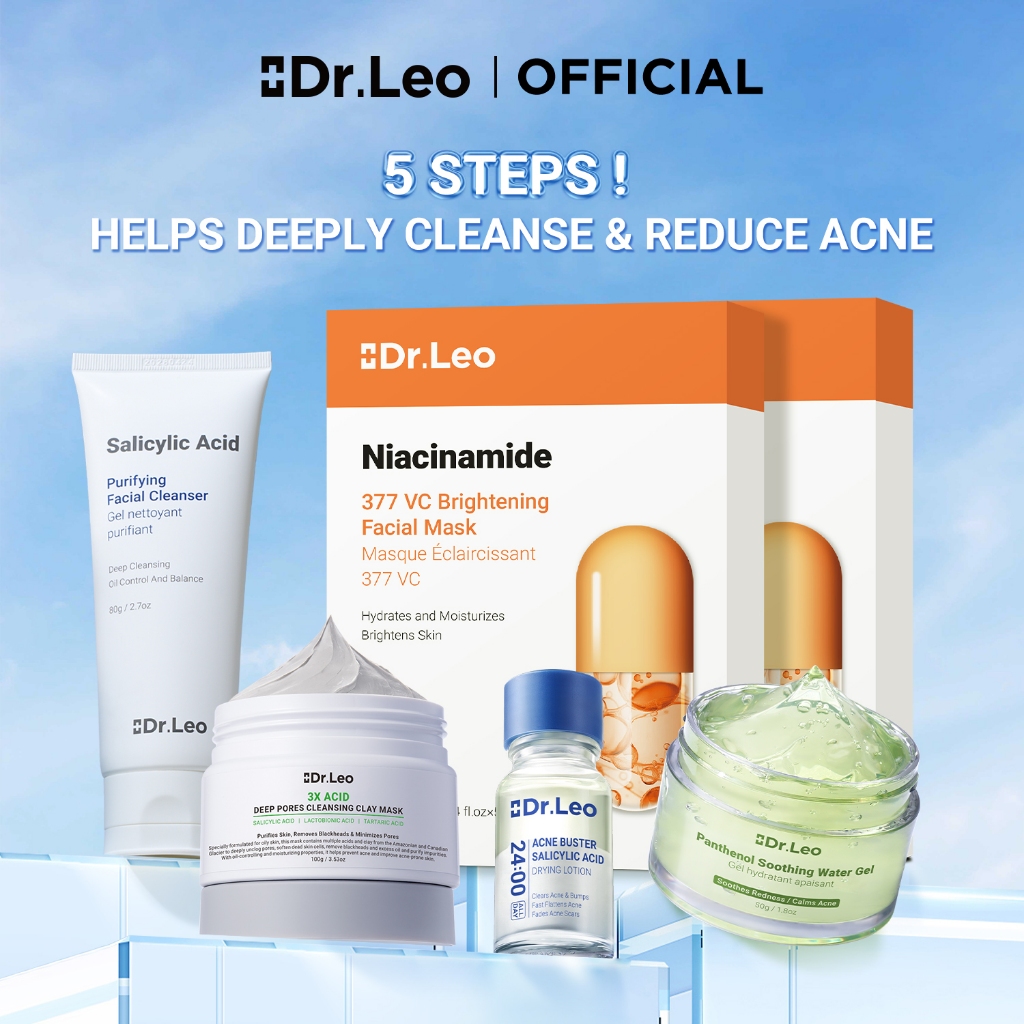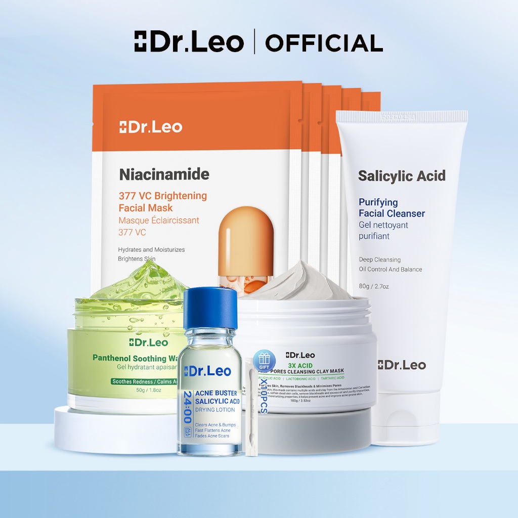[Dr.Leo Acne Solution Set] Acne Removal Blackhead Removal Improved Acne Marks Moisturizing Salicylic Acid Anti-Acne Essence & Deep Cleansing Clay Mask & Facial Cleanser & Soothing Cream & Hyaluronic Acid Moisturizing Mask skincare set
