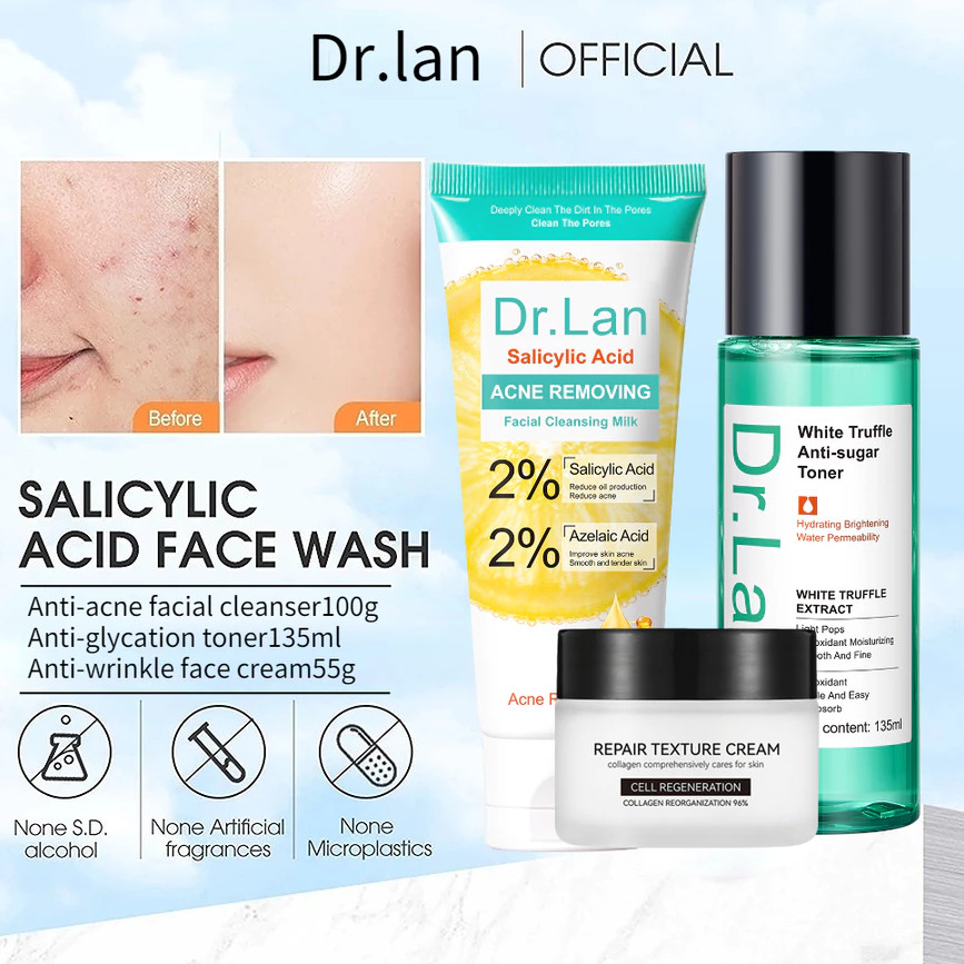 Dr.lan Salicylic Acid Cleanser+Mask suit. Contains amino acids to effectively treat acne Oil control