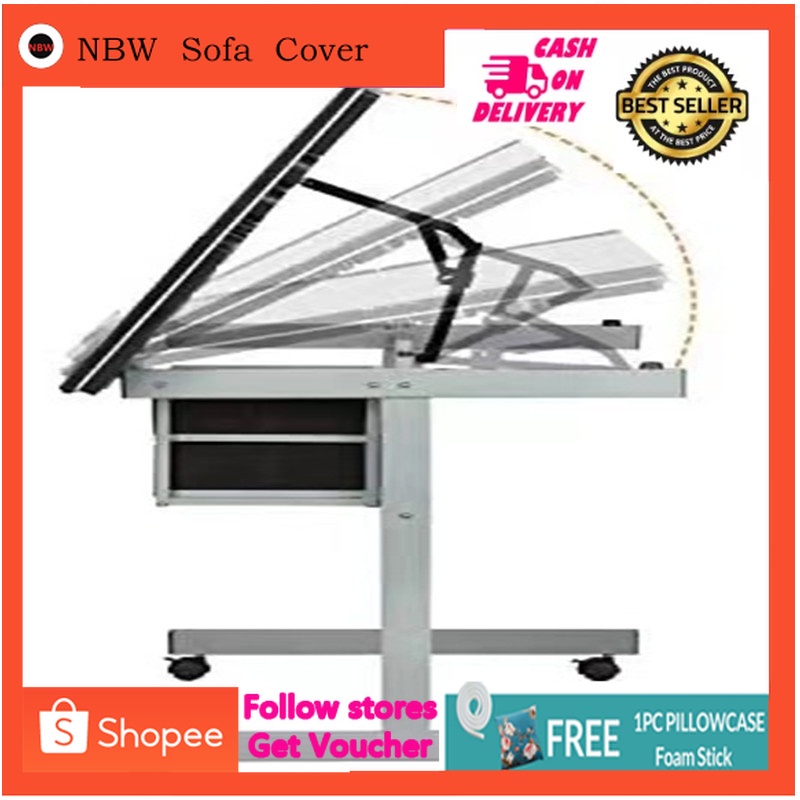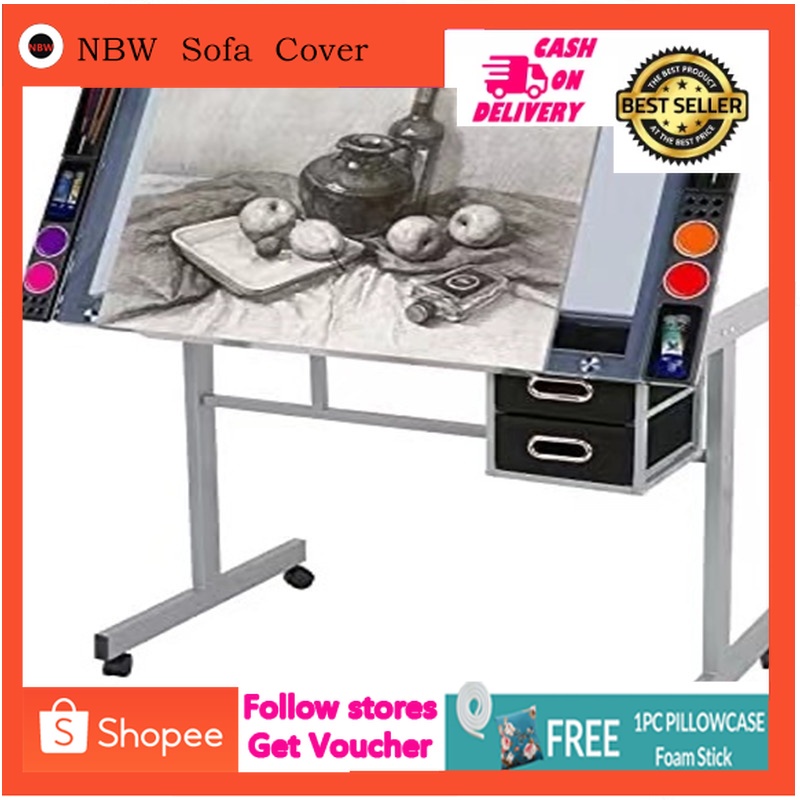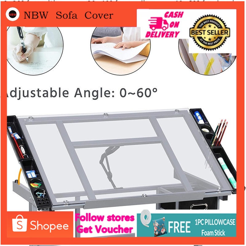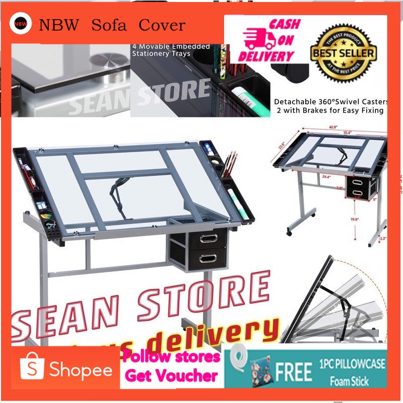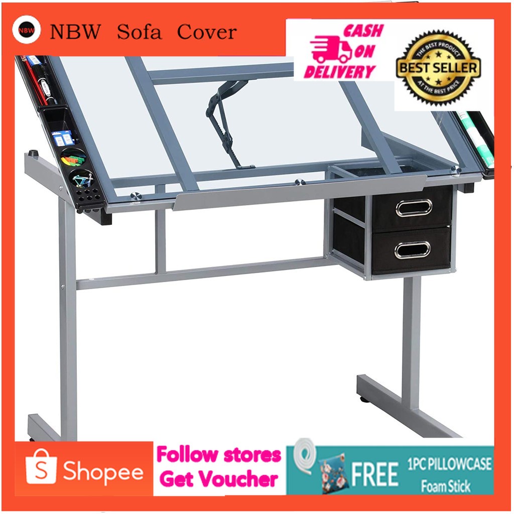 Drafting glass table drafting table with extra side table drawers and 2 pulleys