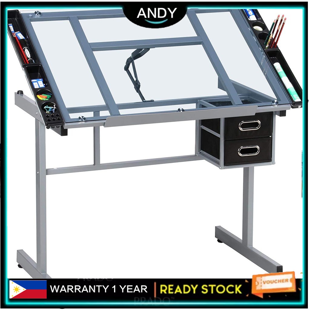 Drafting glass table drafting table with extra side table drawers and 2 pulleys