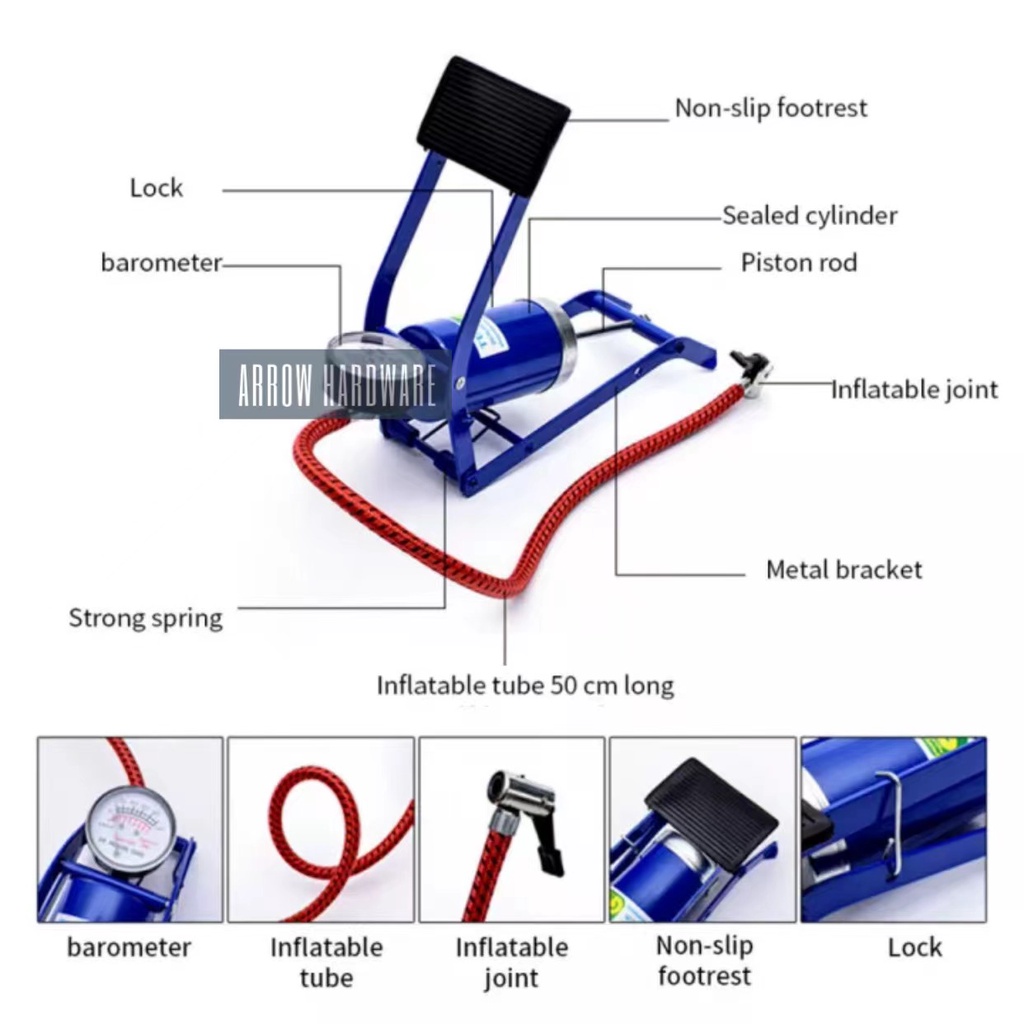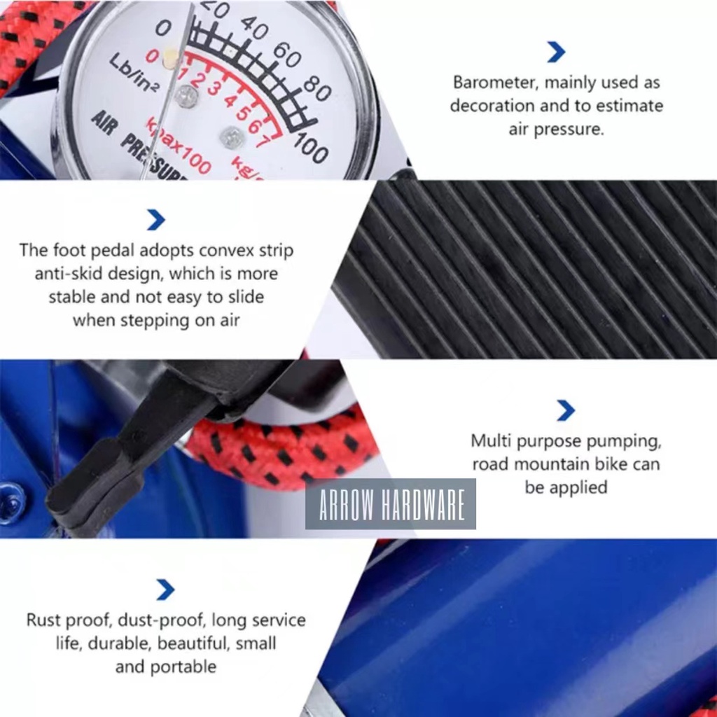 Dragon Multi-Purpose Air Foot Pump High Pressure Portable Foot Tire Pump for Car/Bike/Ball/MTB