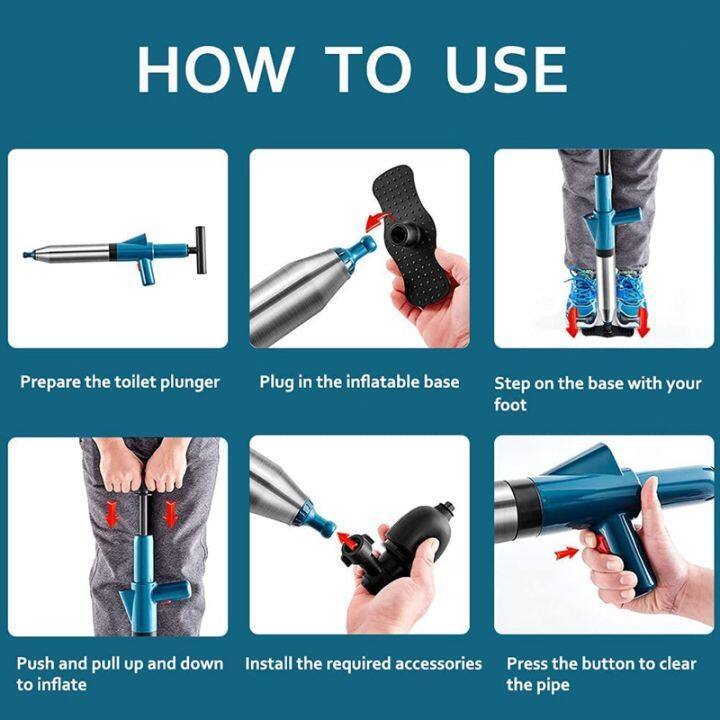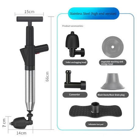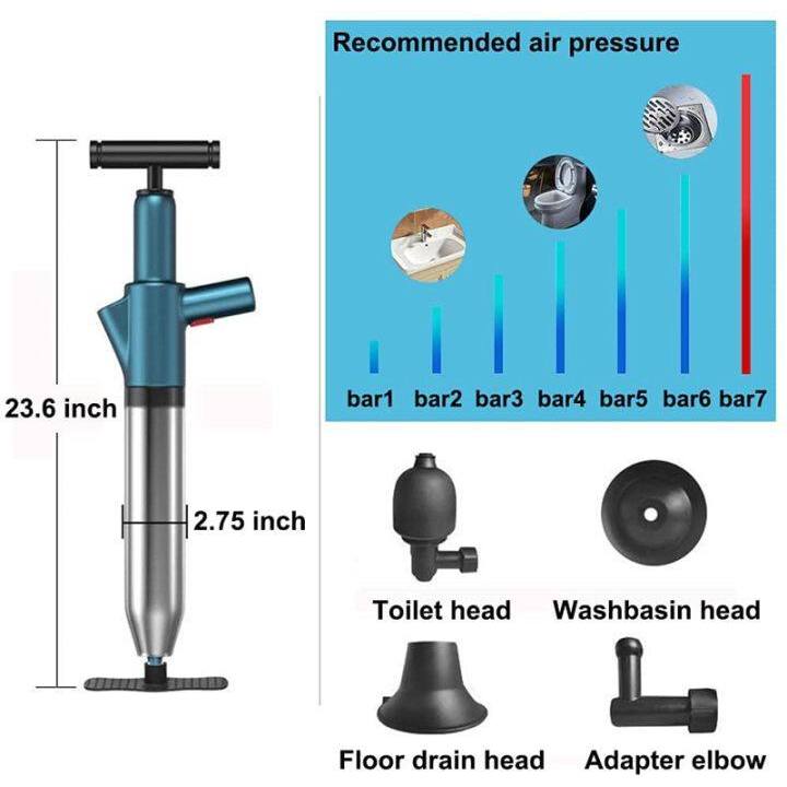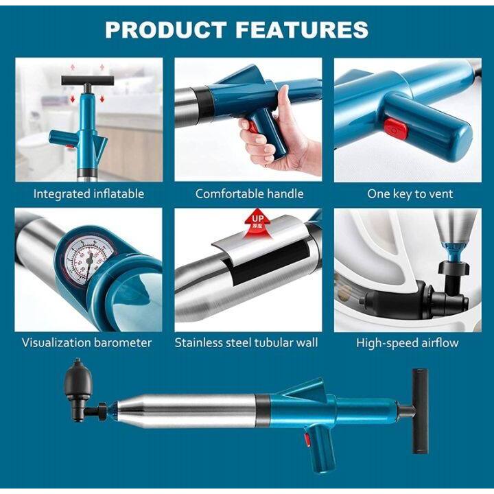 Drain Declogger High Pressure Toilet Air Plunger for Blocked Toilet Floor Drain Washbasin