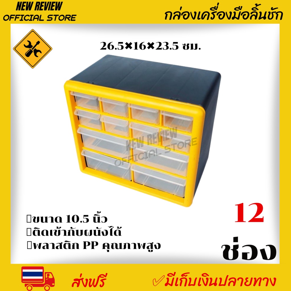 Drawer Type Plastic Spare Part Box Wall Mounted 12 Compartment Tool