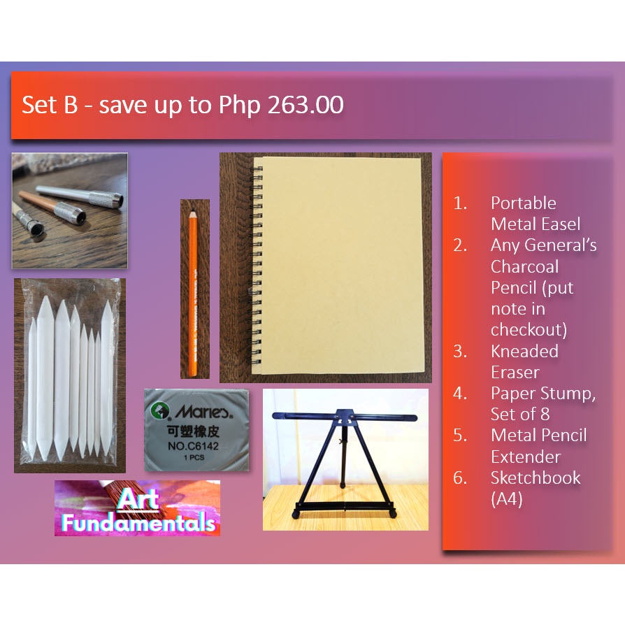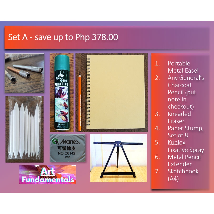 Drawing Essentials Set (Easel + Charcoal + Sketchpad + Eraser)