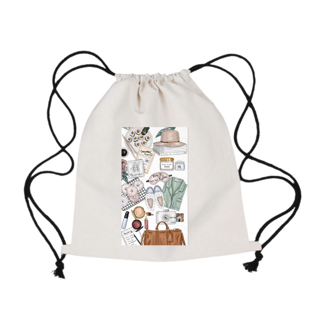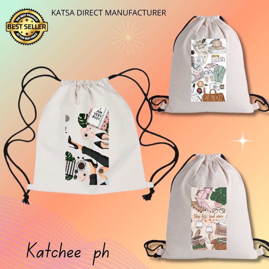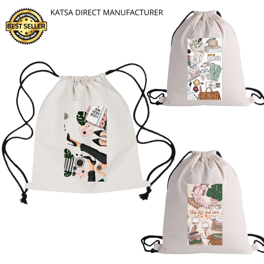 Drawstring Aesthetic Art 2 Bag Katsa Canvas High Quality / Korean Knapsack Shoulder Eco Bag Fashion