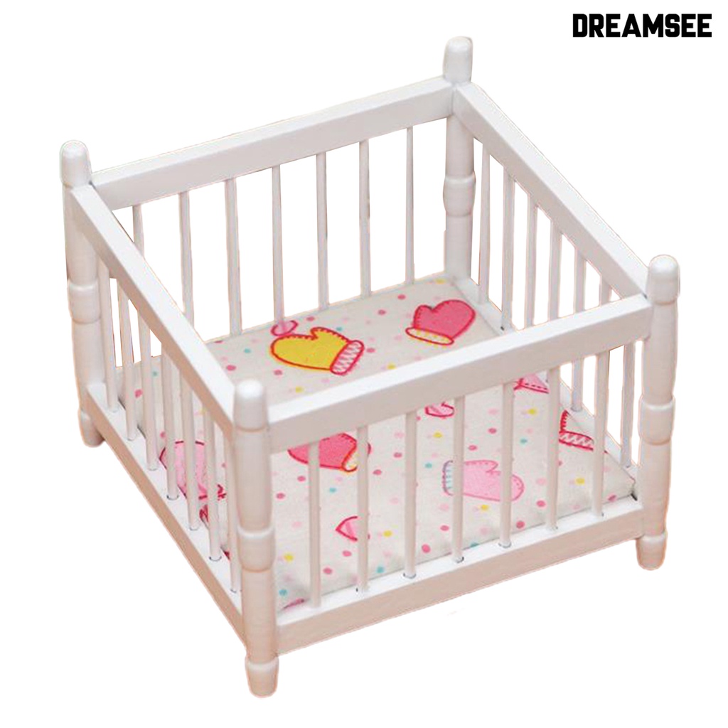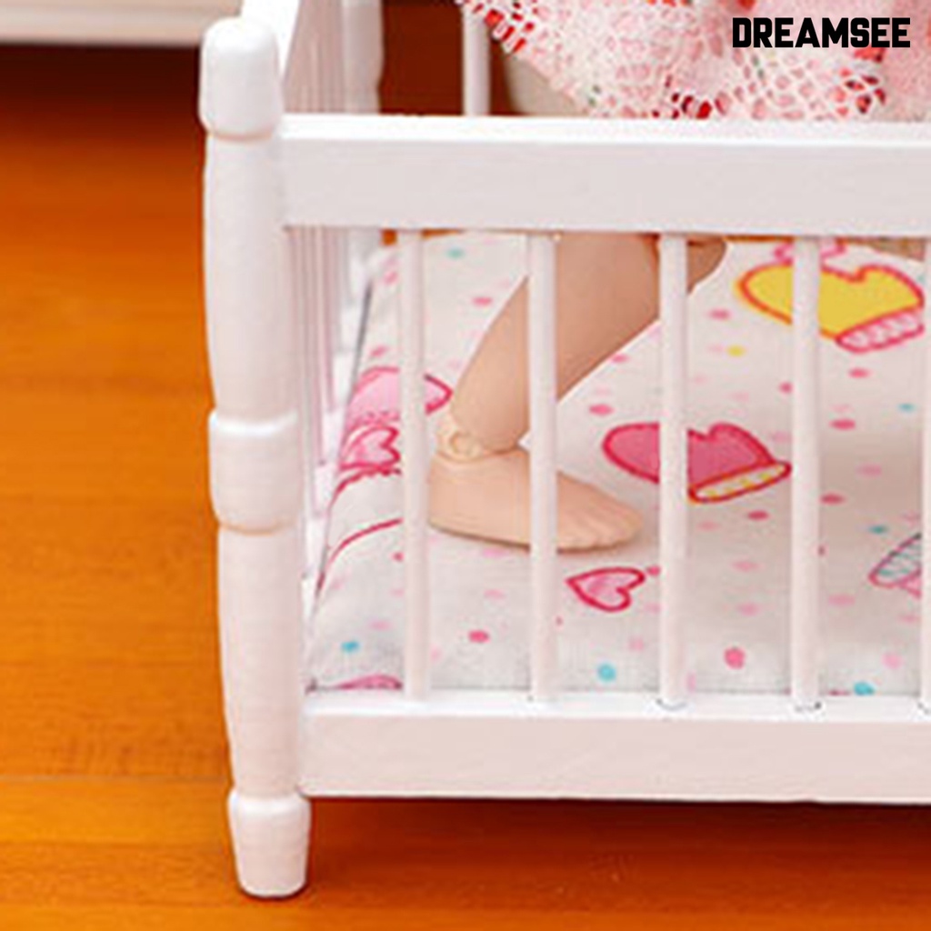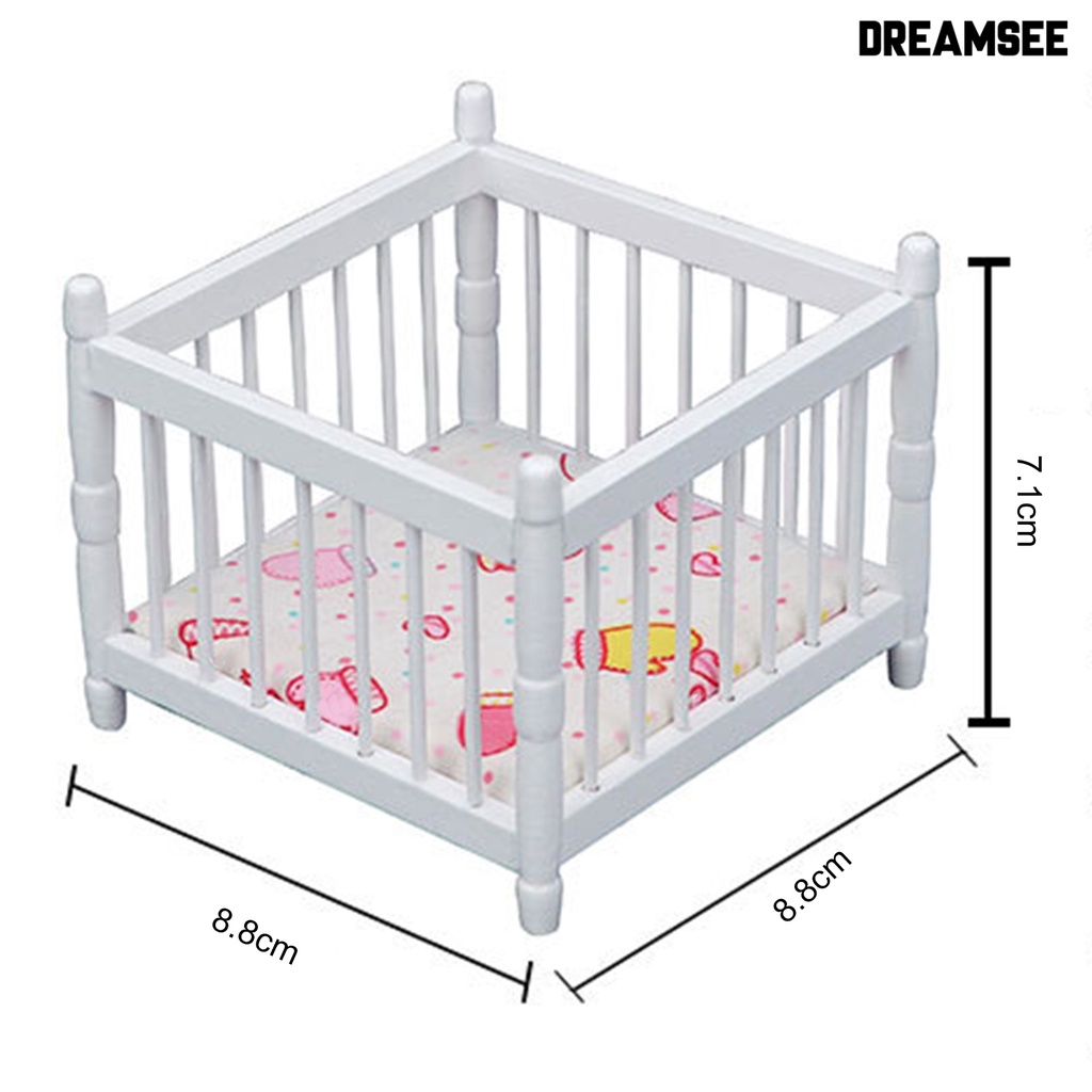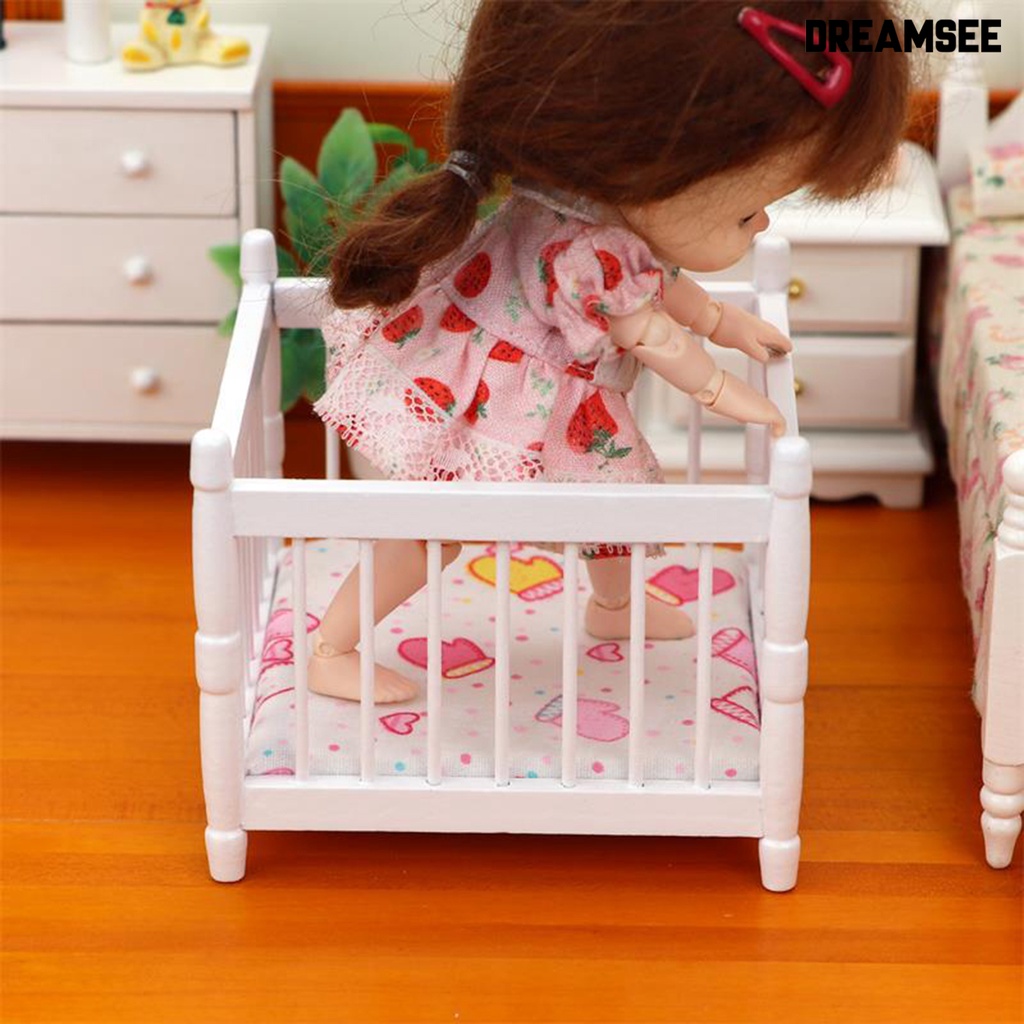 DreamSee Miniature Toddler Bed Minimalistic Creative Wood Furniture Model Baby Bed for 1/12 Doll House