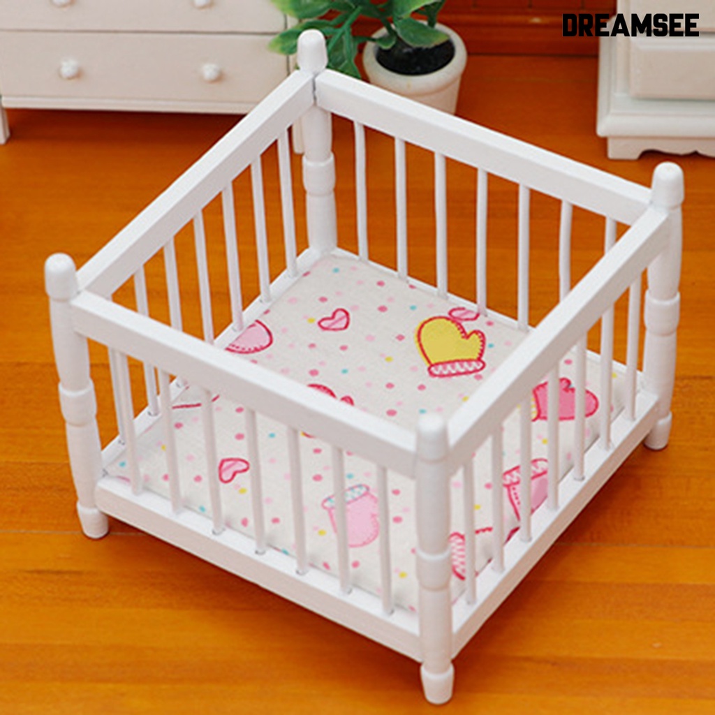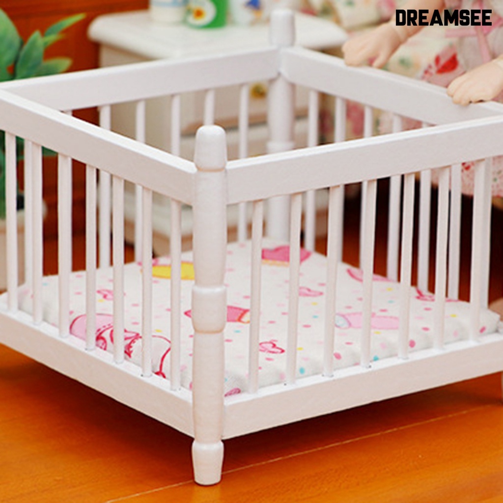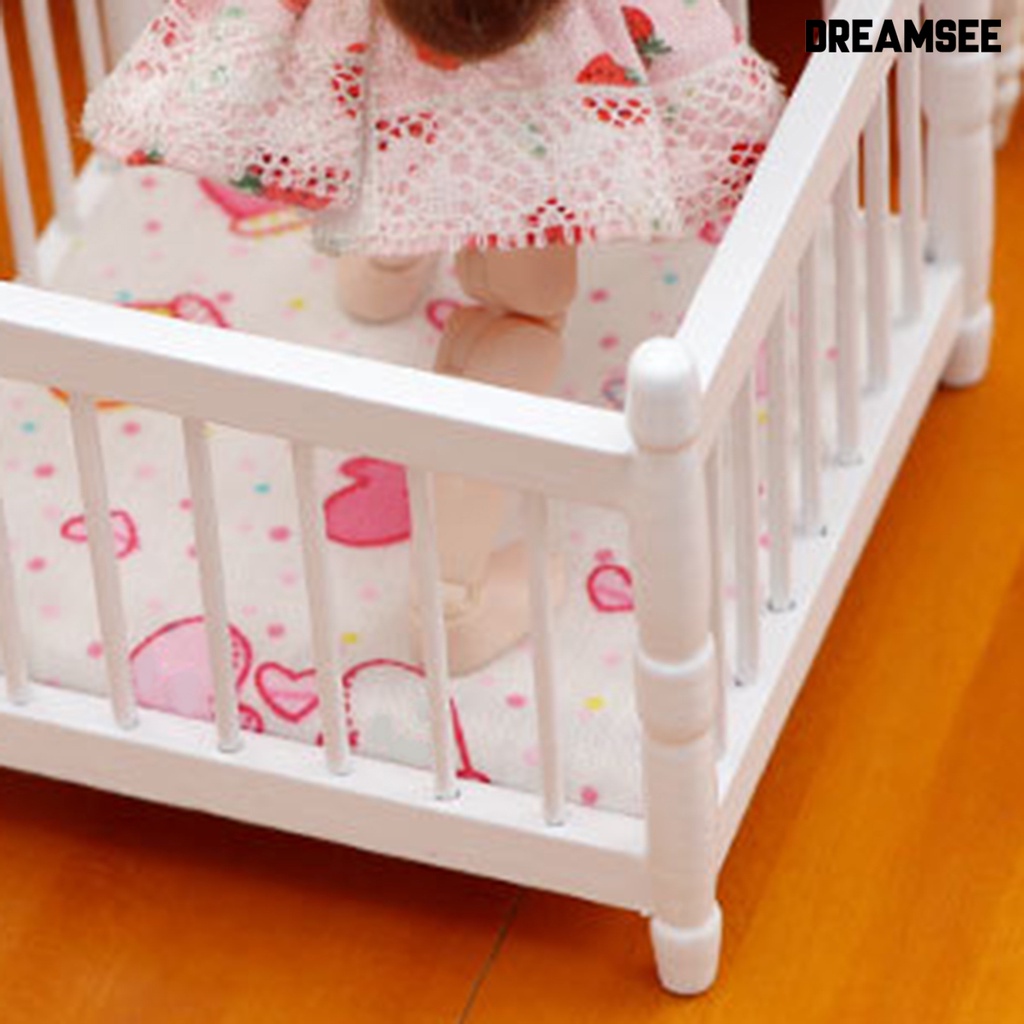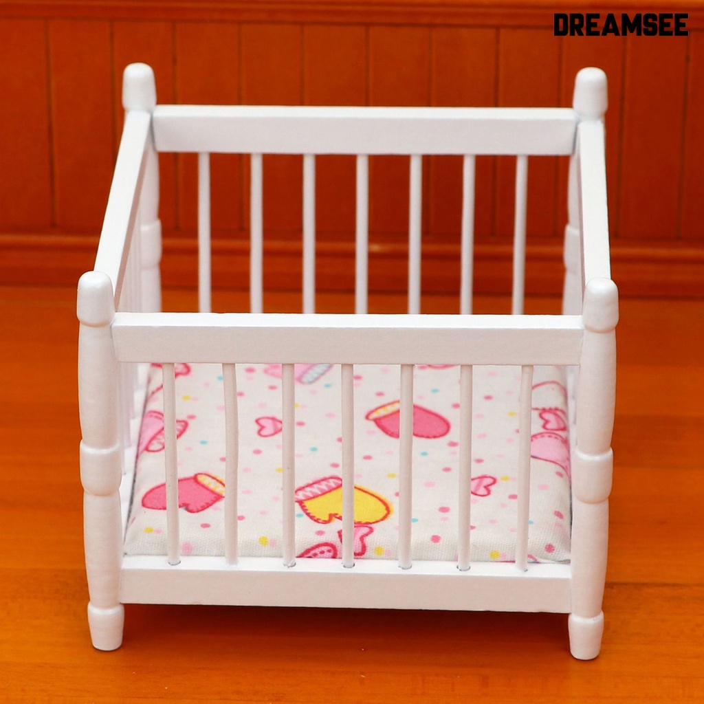 DreamSee Miniature Toddler Bed Minimalistic Creative Wood Furniture Model Baby Bed for 1/12 Doll House
