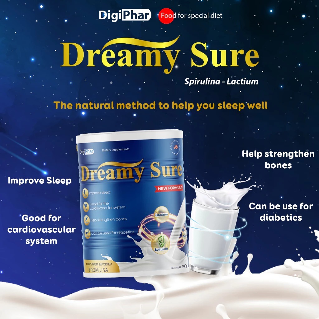 Dreamy Sure Milk Spirulina Lactium helps to Sleep Well Strengthen Bones and Treats Insomnia 400mg