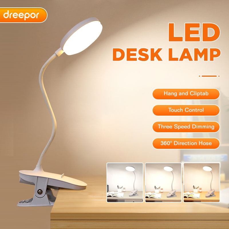 Dreepor LED Table Lamp Rechargeable Study Desk Lamp USB Wireless Reading Light 3 Modes Dimming Light