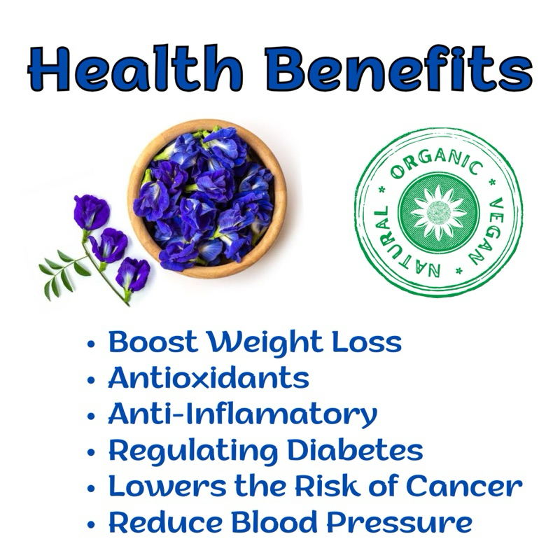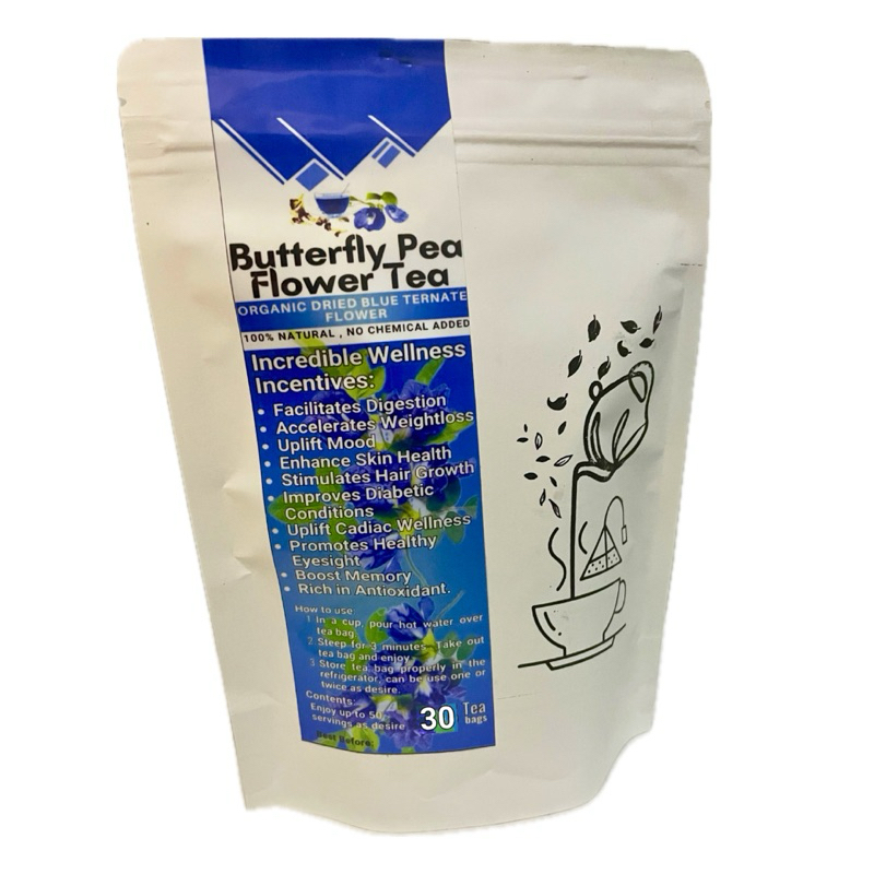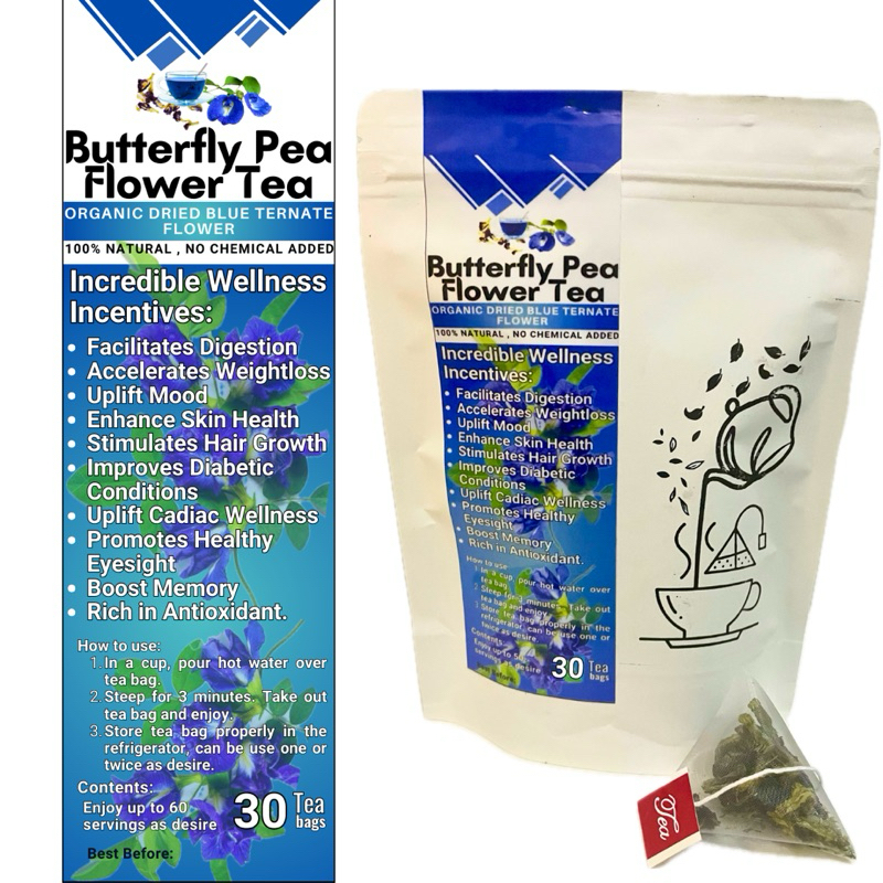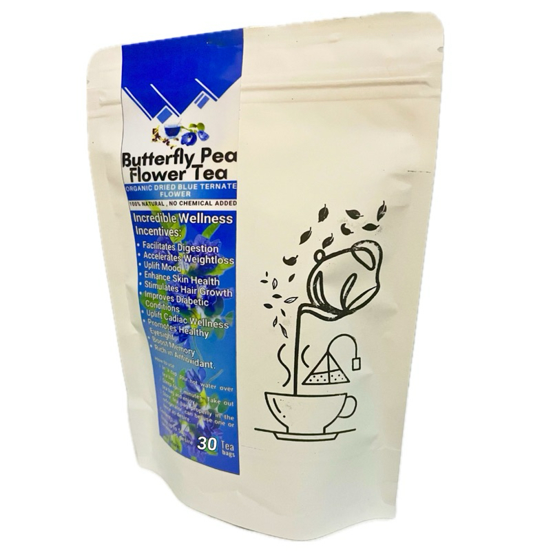Dried Blue Ternate Tea - Organic Butterfly Pea Flower Tea in 30's Pyramid Teabags