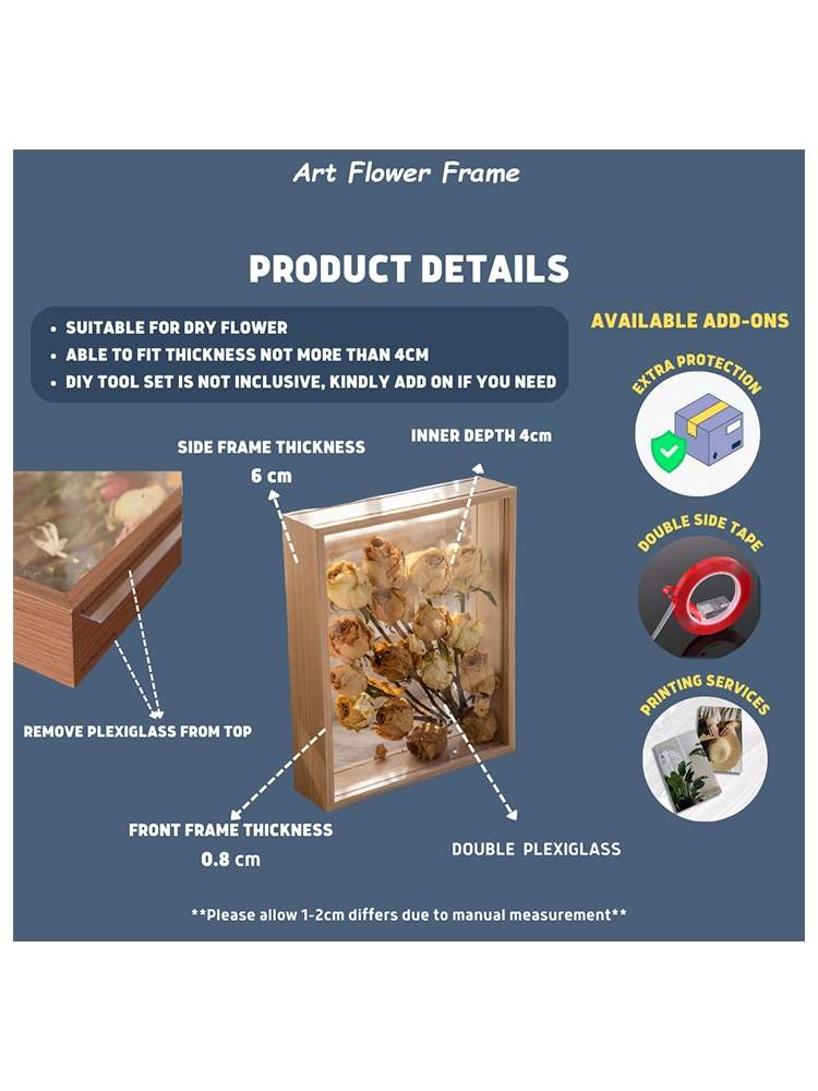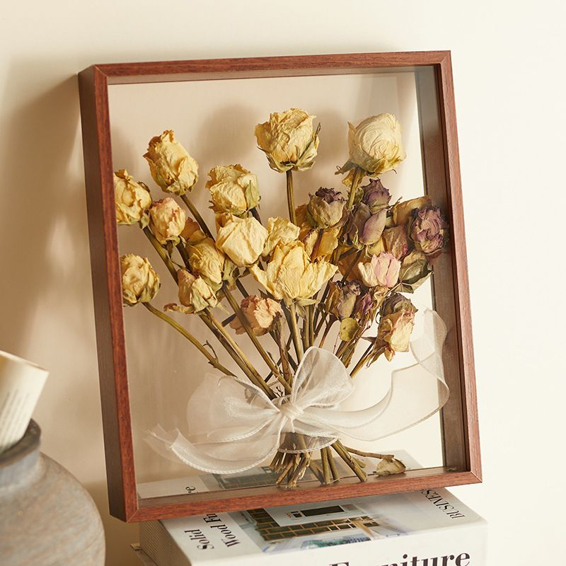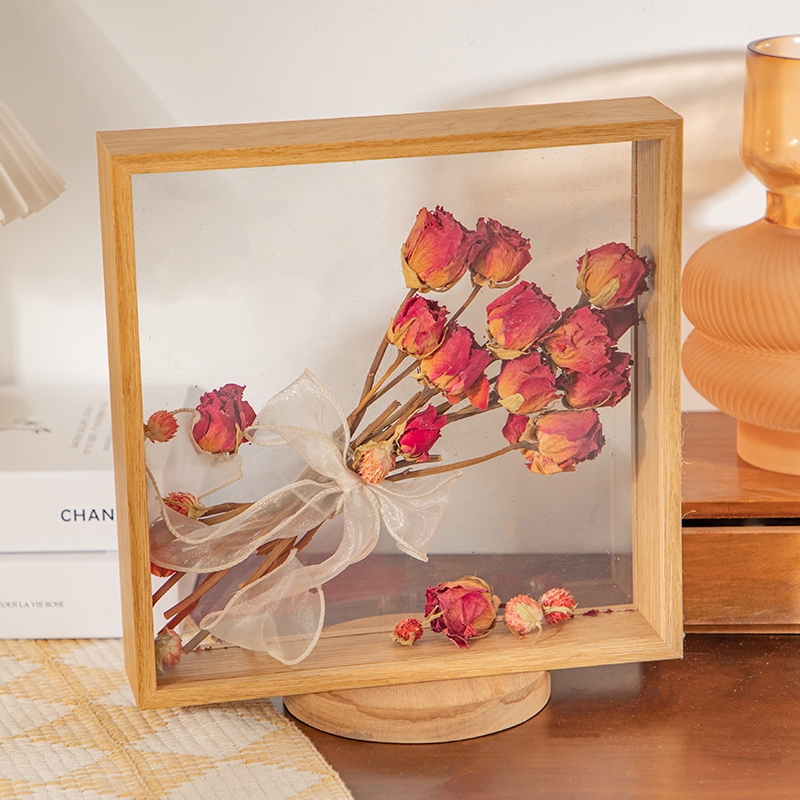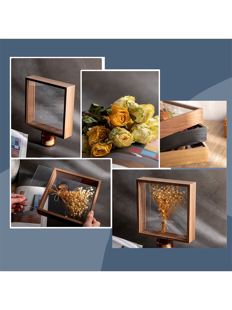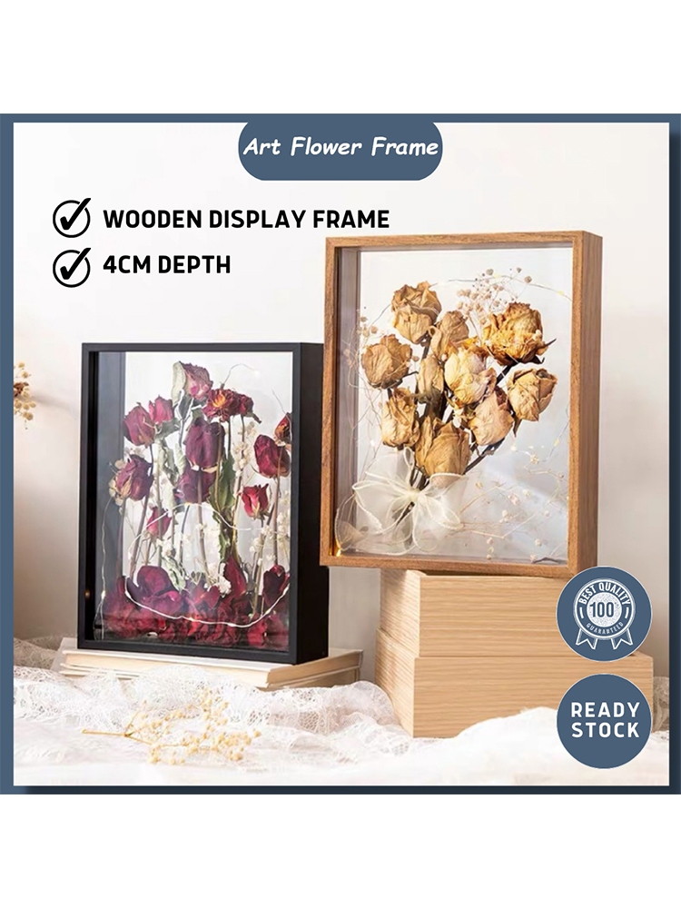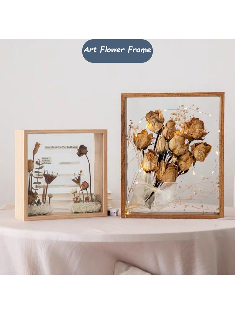 Dried Flower Frame Light Free Shadow Box Depth 4CM DIY Photo Transparent Glass Wooden Crafts 3D