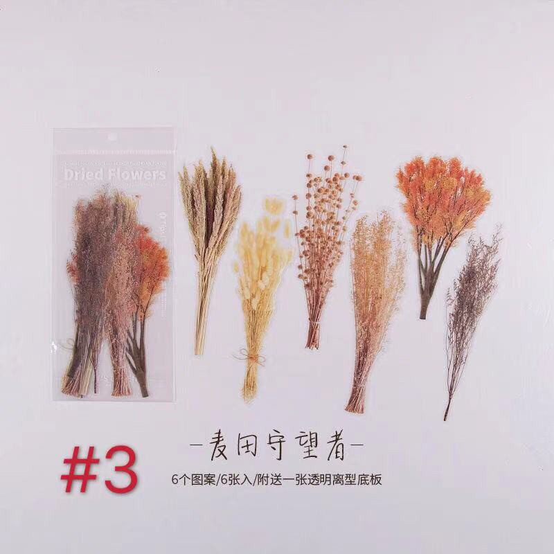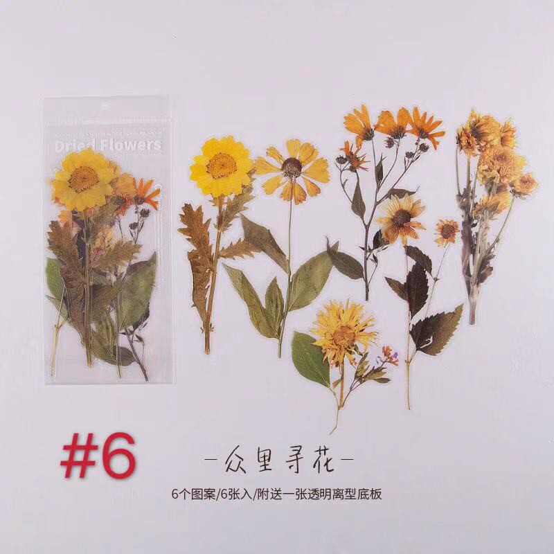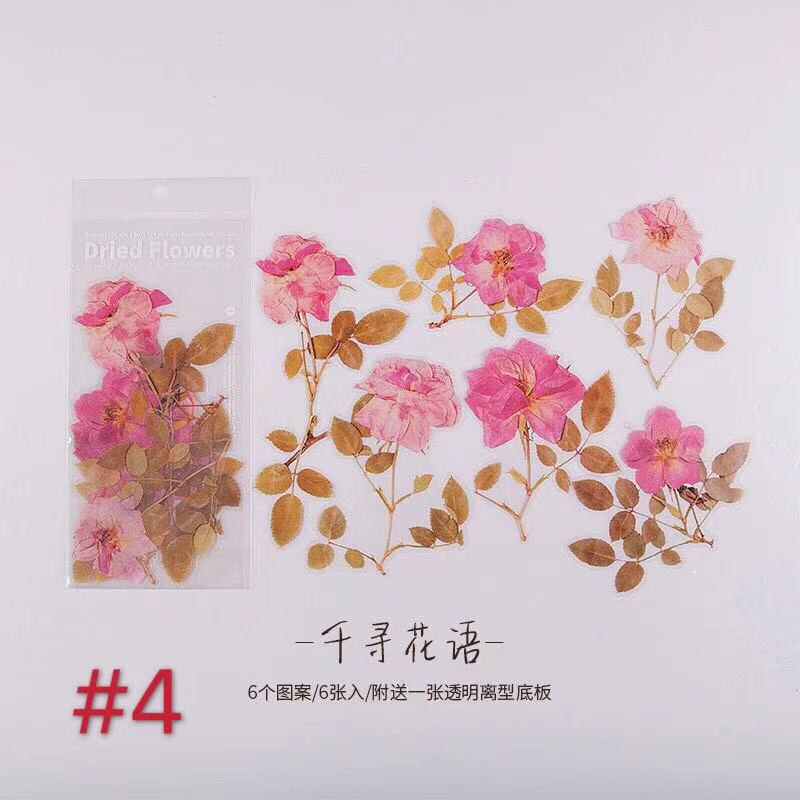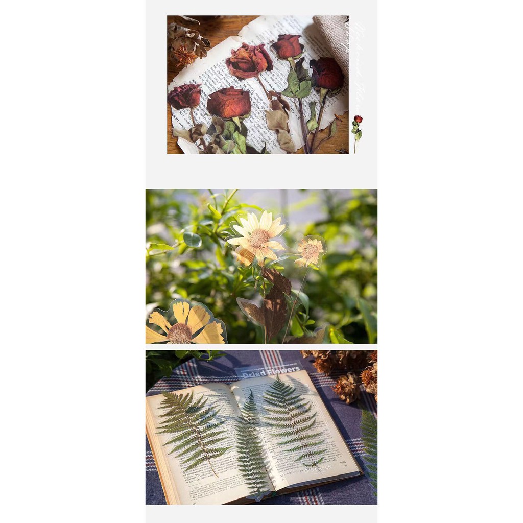 Dried Flower Pet Stickers Pack - Transparent Dry Flower Stickers (6pcs) DIY Diary Stickers