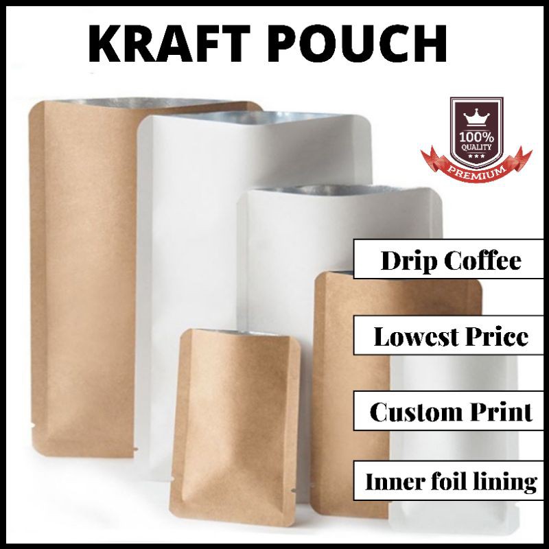 Drip Coffee Packaging | Kraft Flat Pouch 10*15cm | Drip Coffee Pouch | Plain | Custom Print