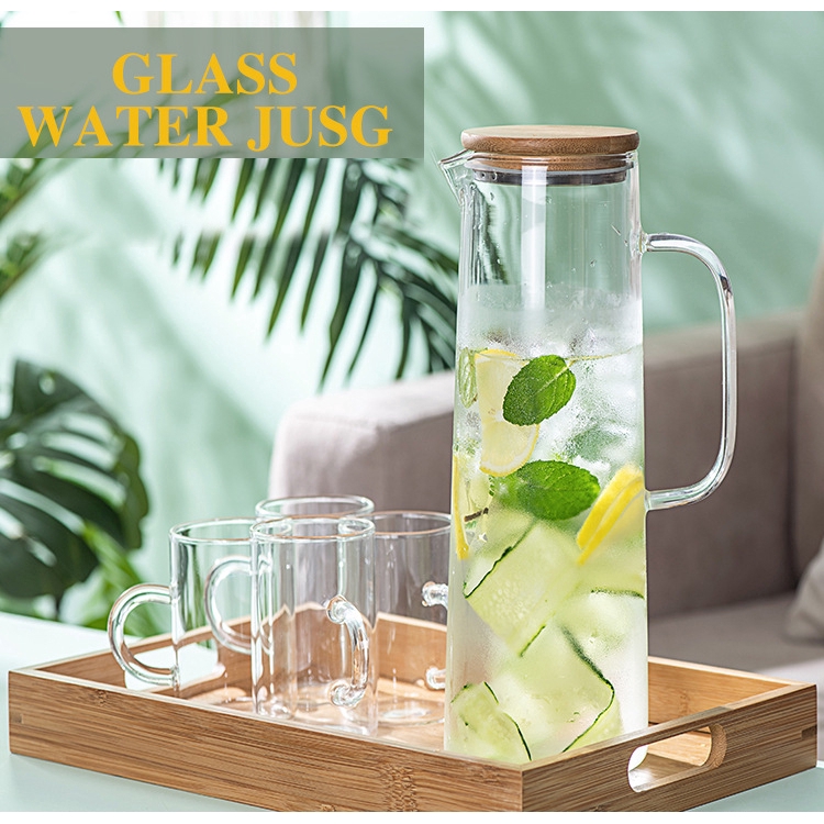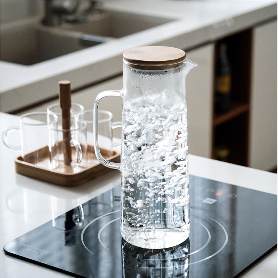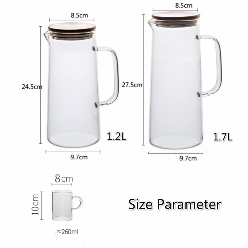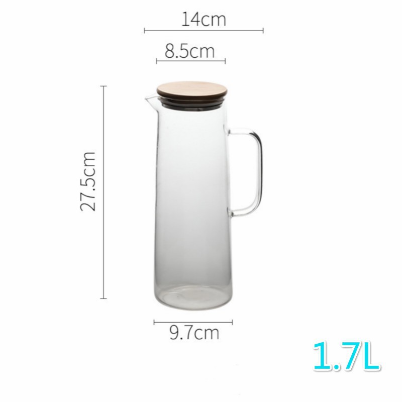 Drip-Free Glass Pitcher for Hot/Cold Water,1.2L/1.7L Glass water Pitcher Teapot for with Bamboo Lid