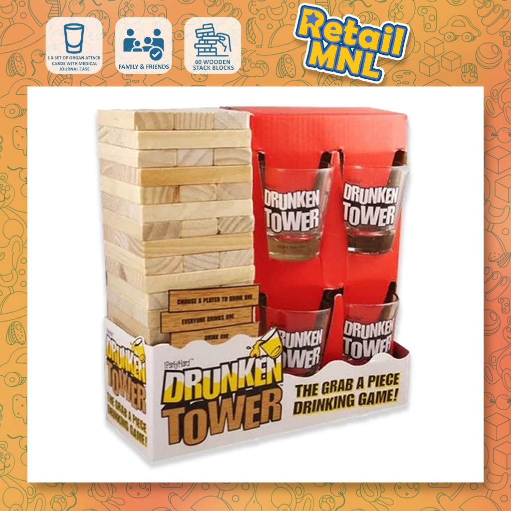 Drunken Tower Shot Glass Drinking Game 4 Shot Glass 60 Wooden Stack Blocks Toy