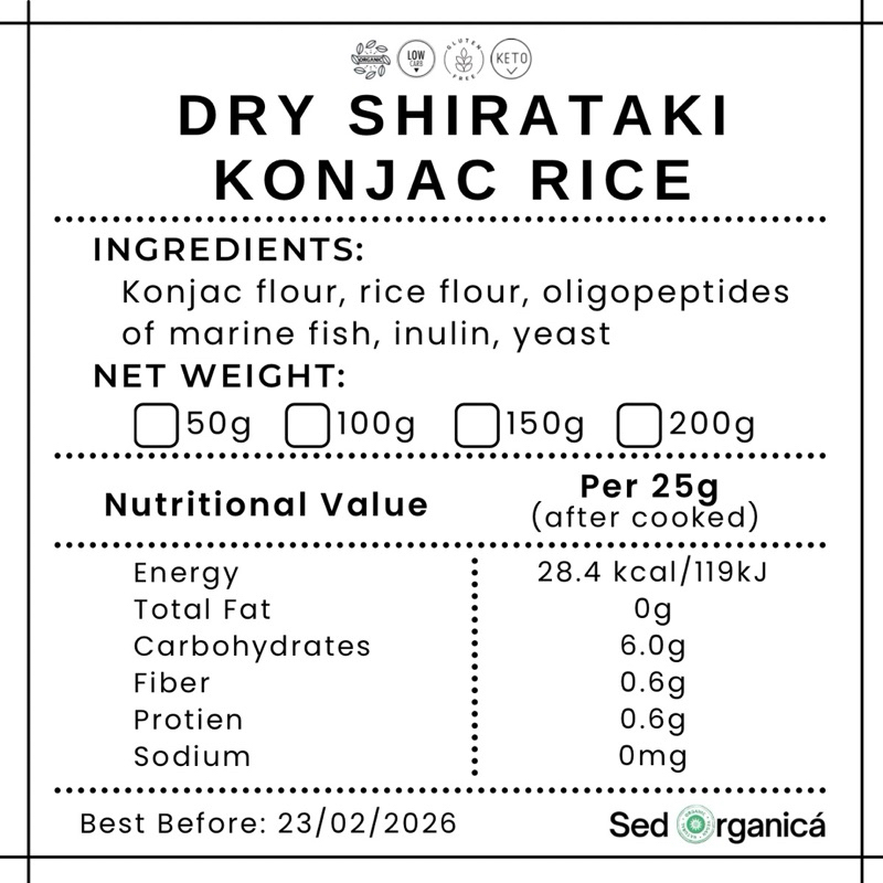 Dry / Dried Shirataki Rice (Organic Konjac from Japan) Best Rice Alternative (The Miracle Rice)