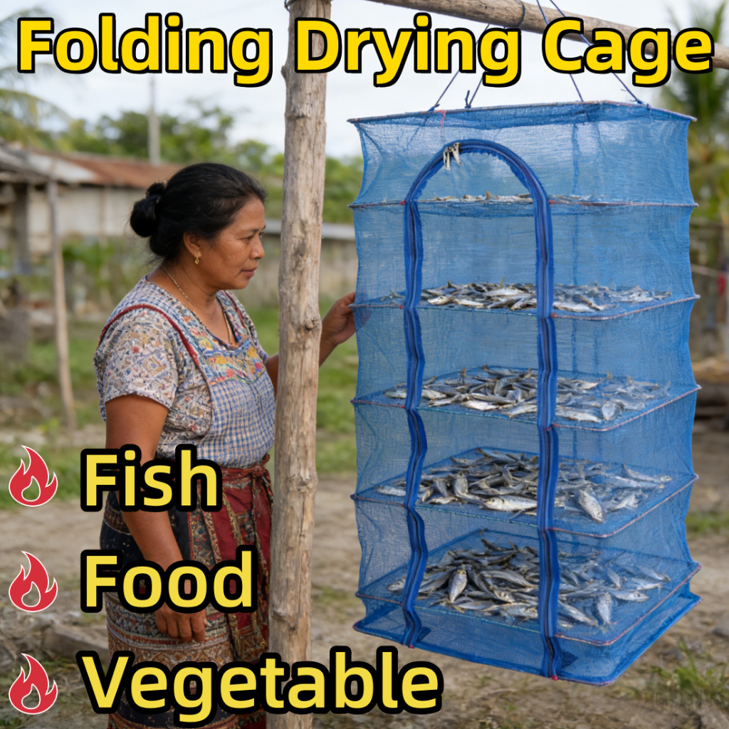 Fishing Net Cage Drying Net Foldable Hanging Rack Single Layer 35*35CM Cage