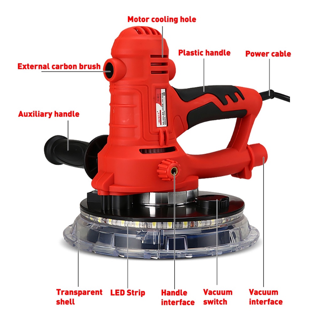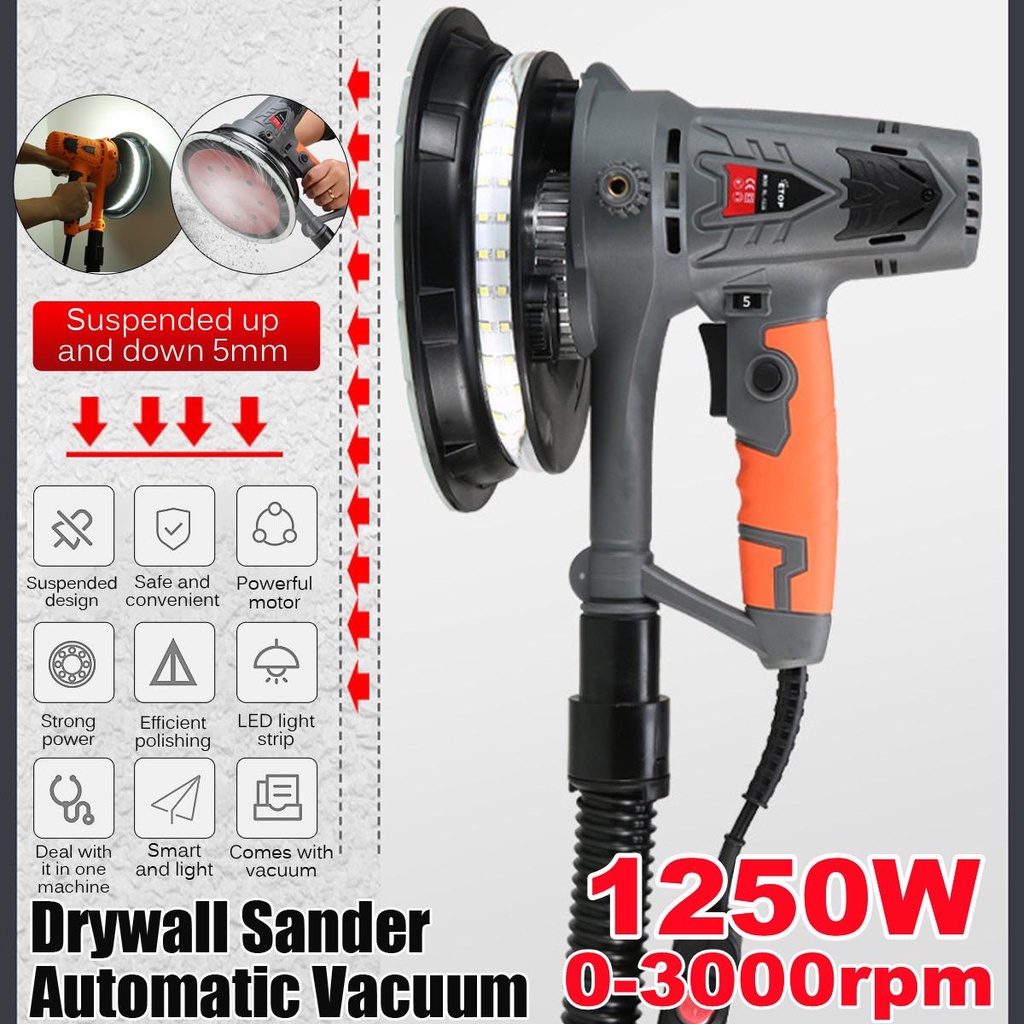 Drywall Sander Wall Polishing Machine Grinding 220V 1250W Portable Led Light 1000-3000R/min