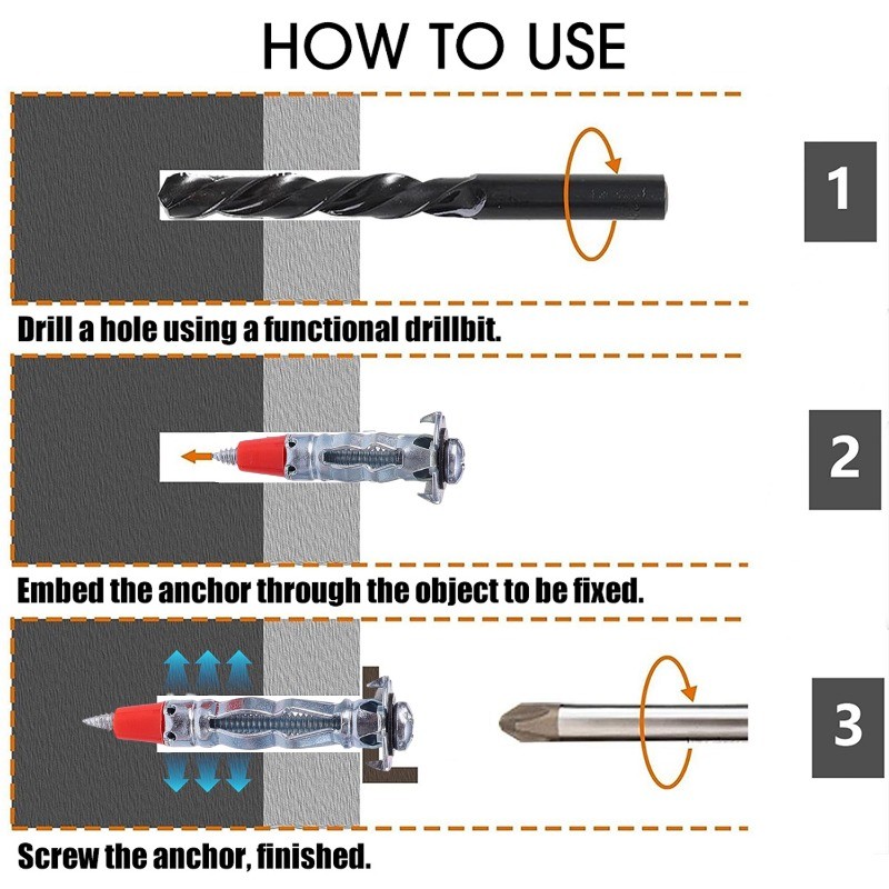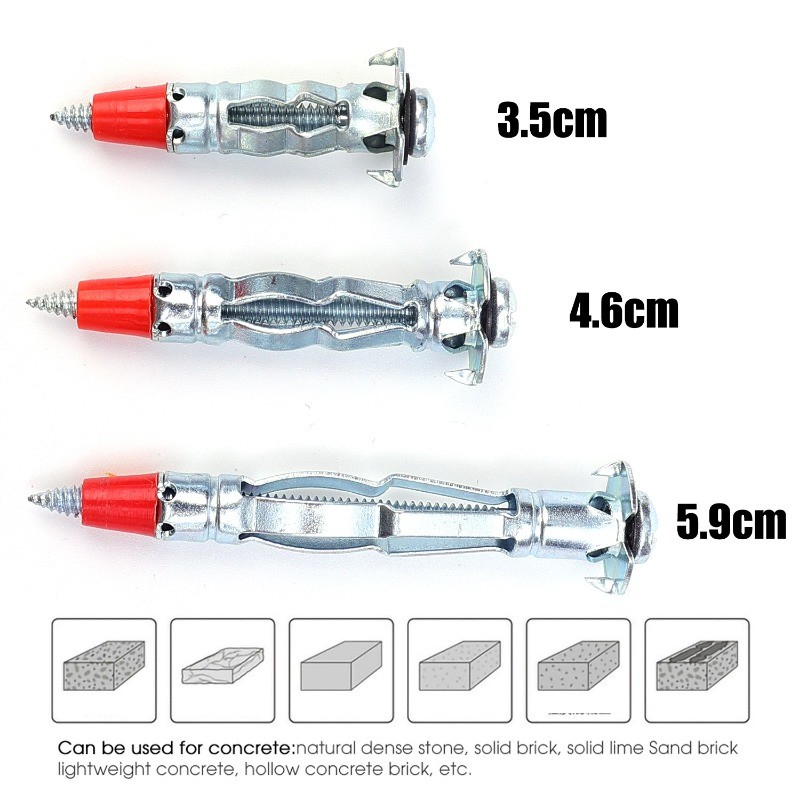 Drywall Self Drilling Anchor with Screw Kit Gypsum Expansion Drywall Anchor Screw for Fixing TV Shelf Cabinet Curtains