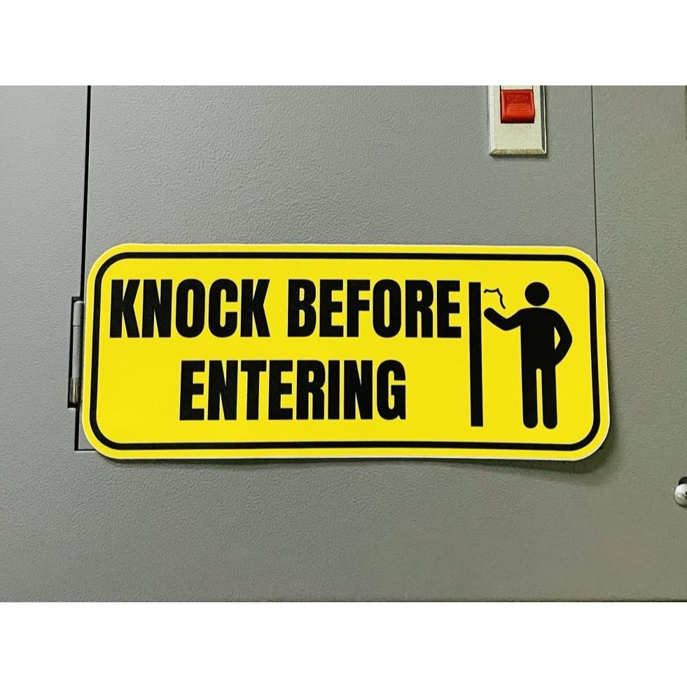 Dsign Knock Before Entering 10x4" Sticker Signage, Waterproof Sticker, Door sign.