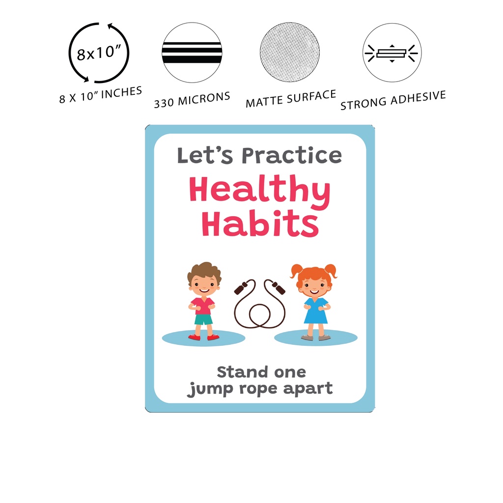 Dsign Let's Practice Healthy Habits for Kids 8 x 10inches l waterproof l sticker signages