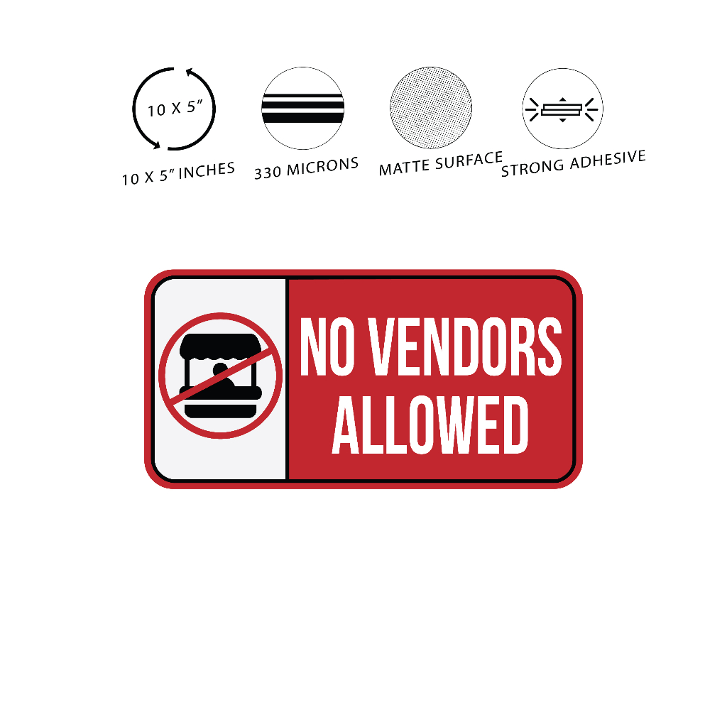 Dsign No Vendors Allowed 10 x 5 Inches Sign Sticker, Warning Sign, Store Sign, Wall Signage.