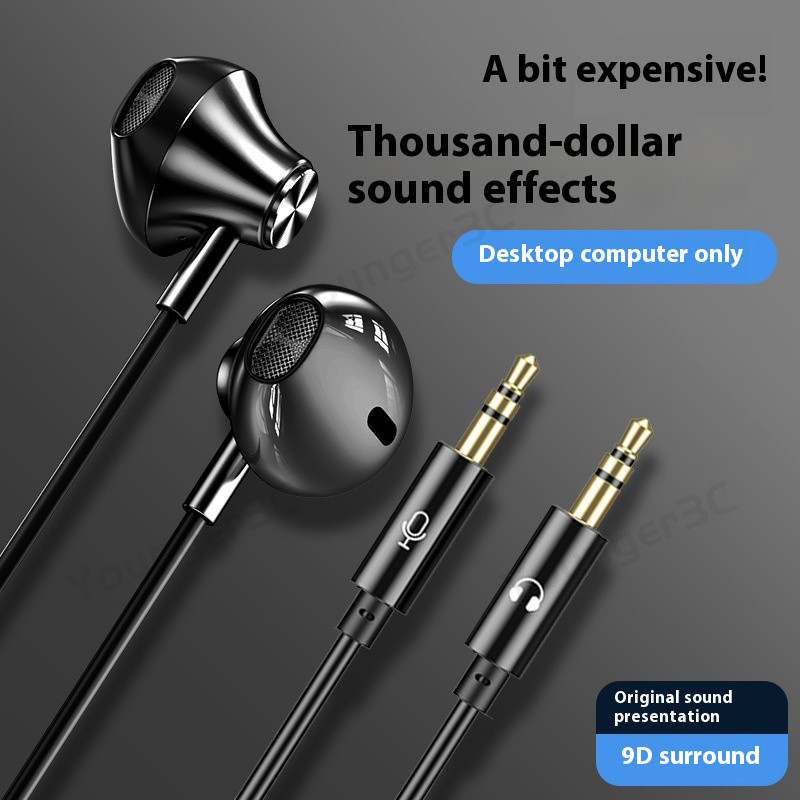Dual 3.5mm Plug Audio Headphones 2-Meter In Ear Wired Heavy Bass Earphone Metal Headset With Microphone For PC K Songs Game