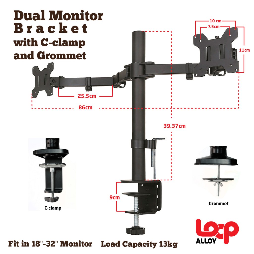 Dual Arm Monitor Mount With C-Clamp And Grommet Bracket