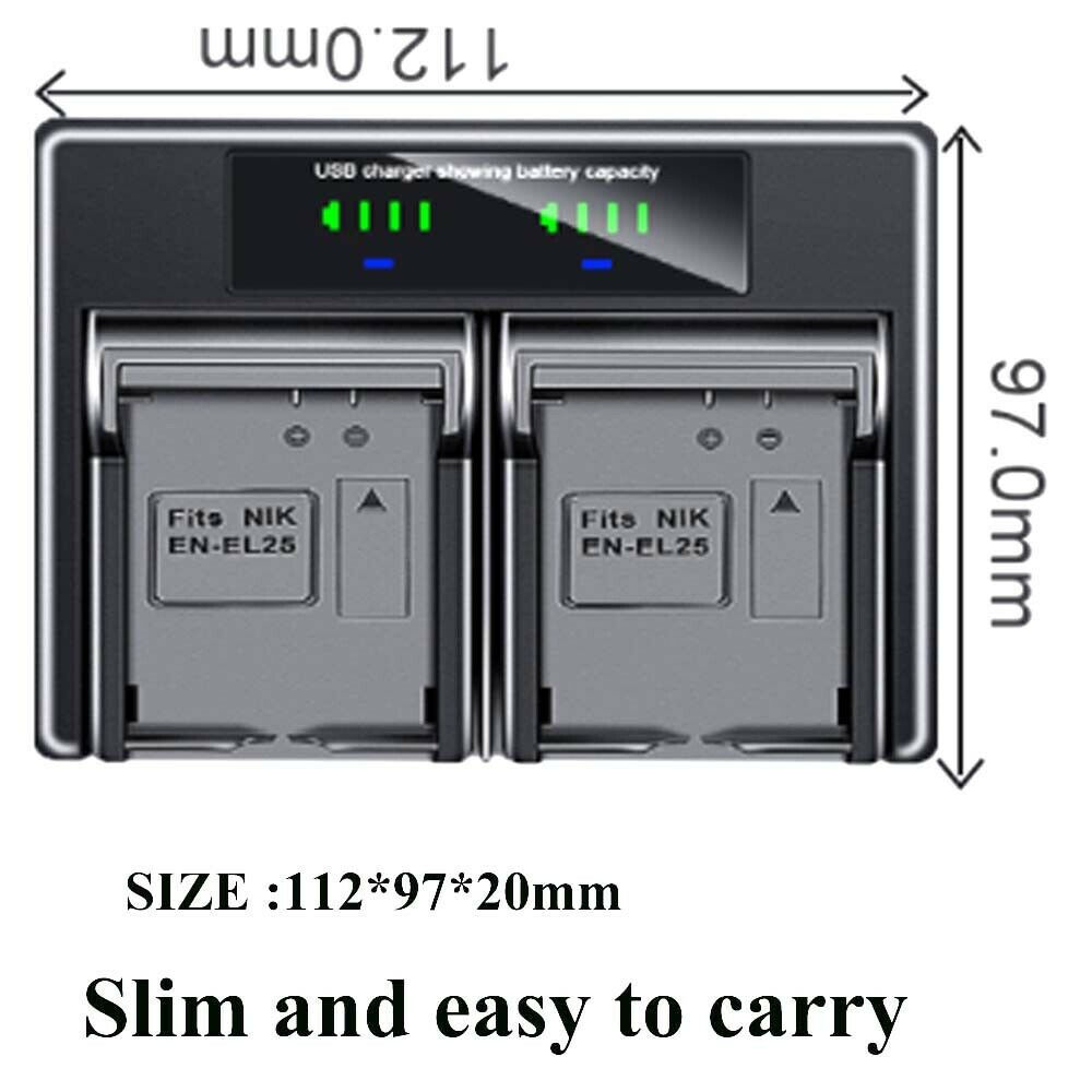 Dual Battery Charger For Nikon EN-EL25 50 Battery ZFC Z50 Z-50 Z-FC Camera MH-32