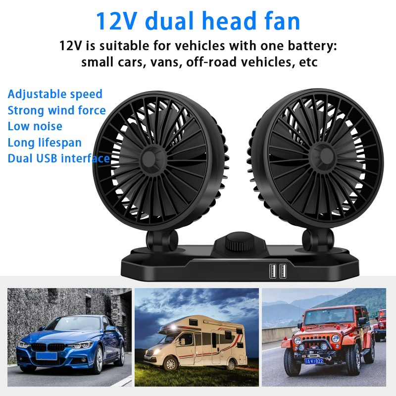 Dual Car Fan - Mini Dual Fan 12V - 24V, 360 Rotation, Car Utility, High Quality Car