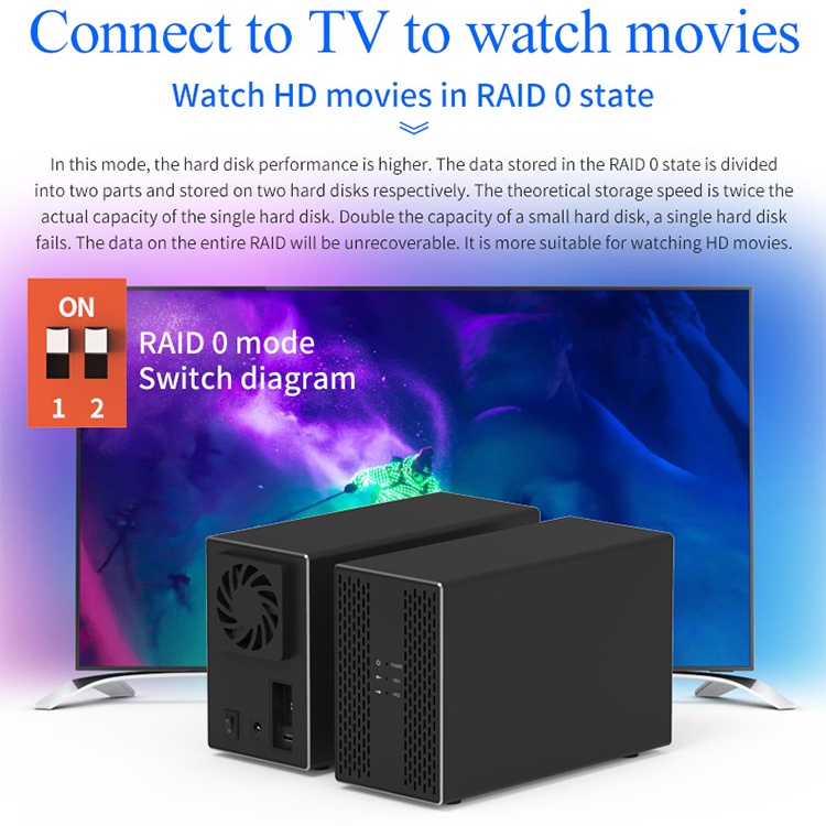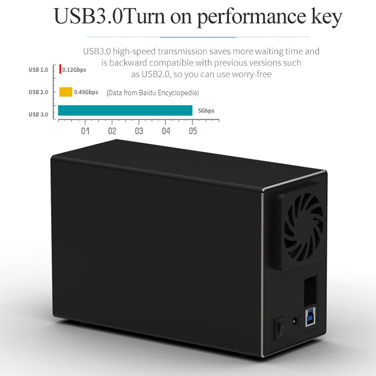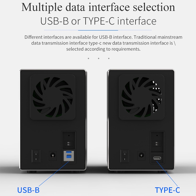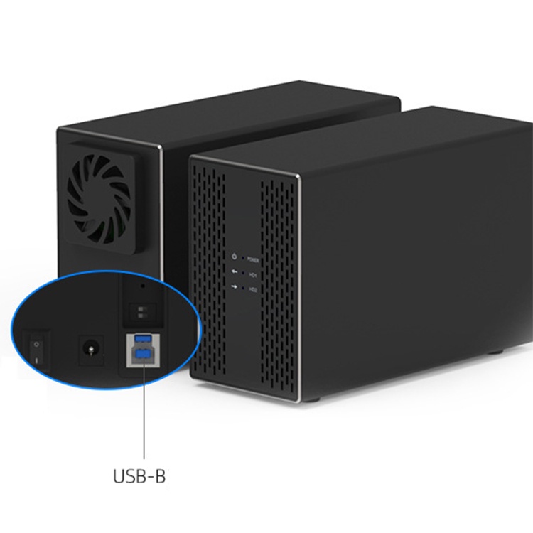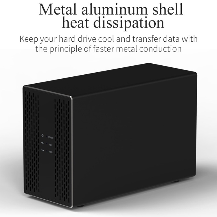 Dual Hard Drive Disk Array Cabinet 3.5'' HDD Enclosure with RAID Function USB3.0/Type-C 2 Bay Data Backup for PC