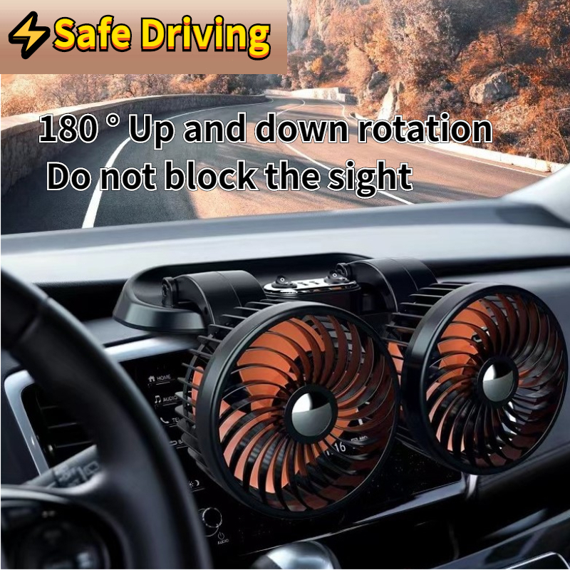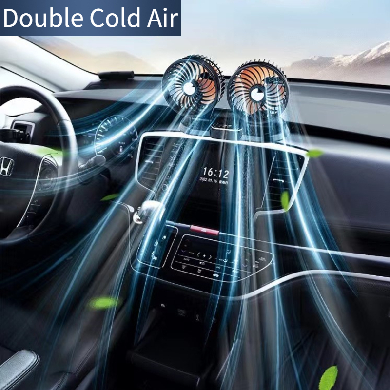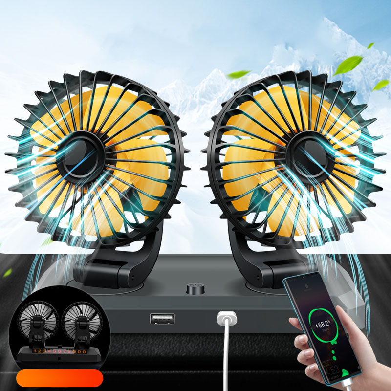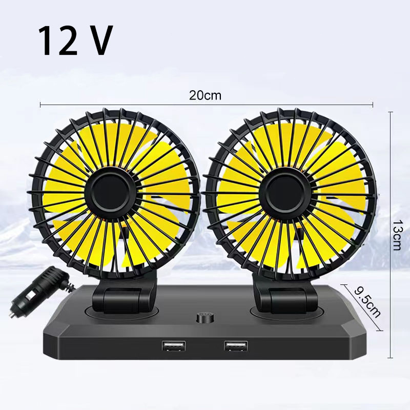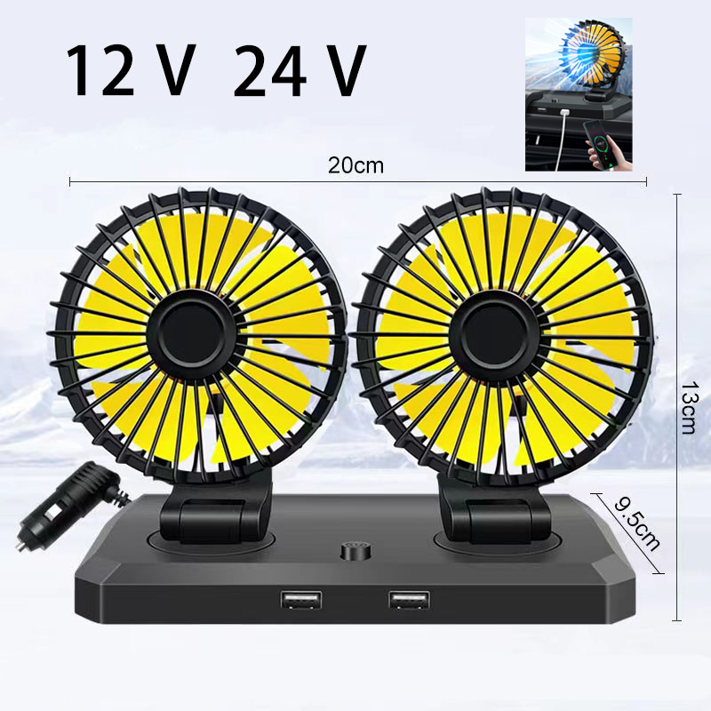 Dual Head Fan 12V/24V Car Fan 360 Degree Adjustable Car Dedicated Fan With USB Charging
