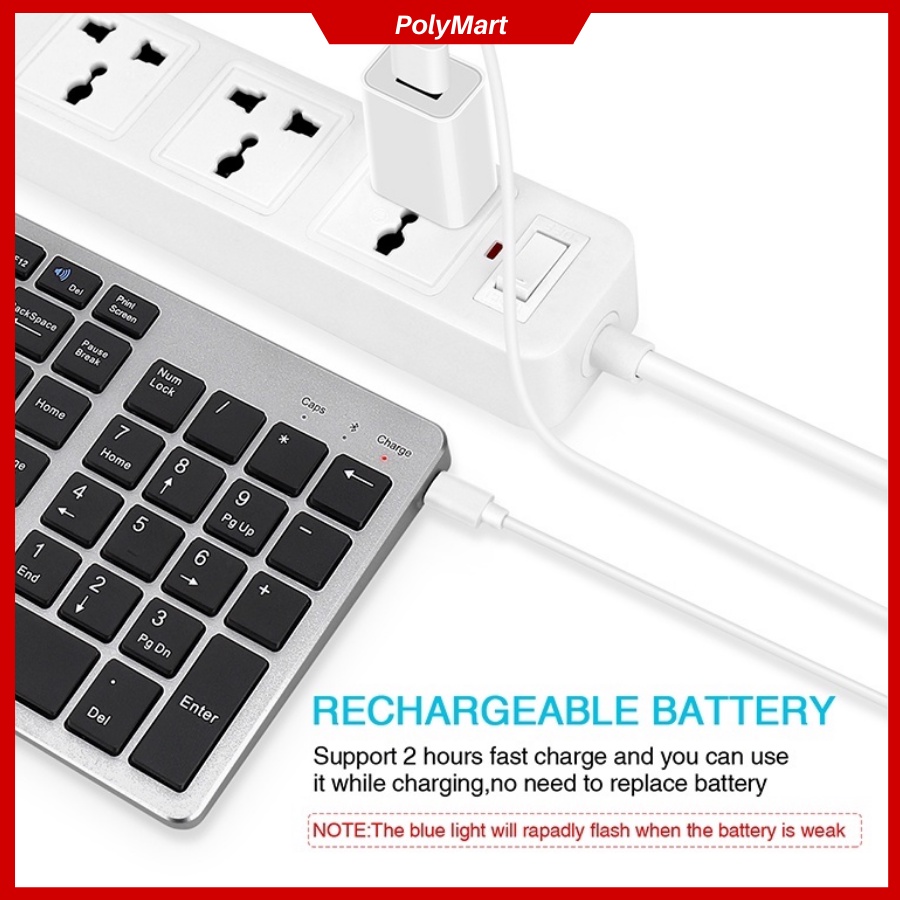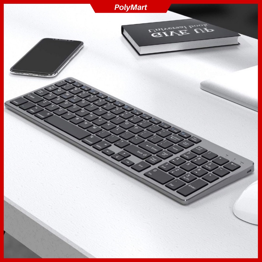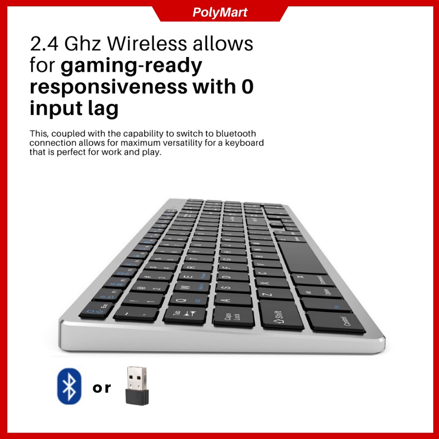 Dual Mode Full Wireless Keyboard Rechargeable MacOS Windows Slim Thin Keyboard 2.4 GHz + Bluetooth