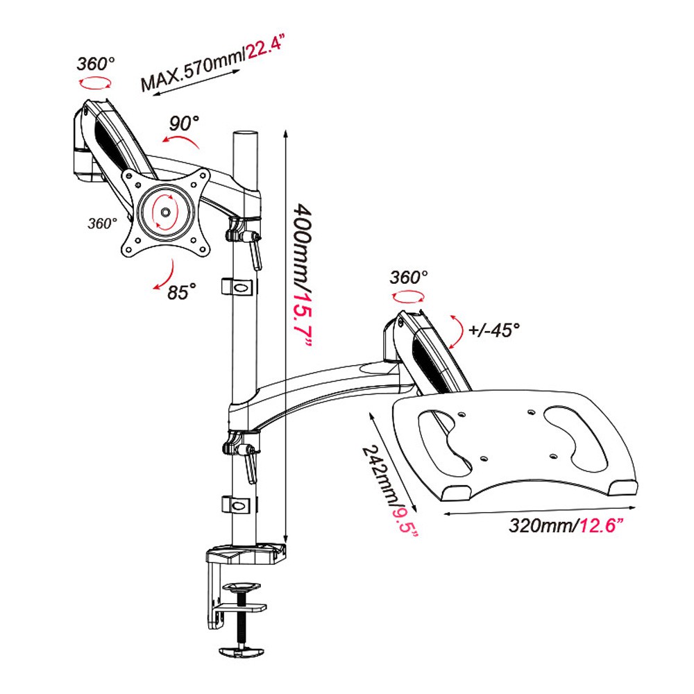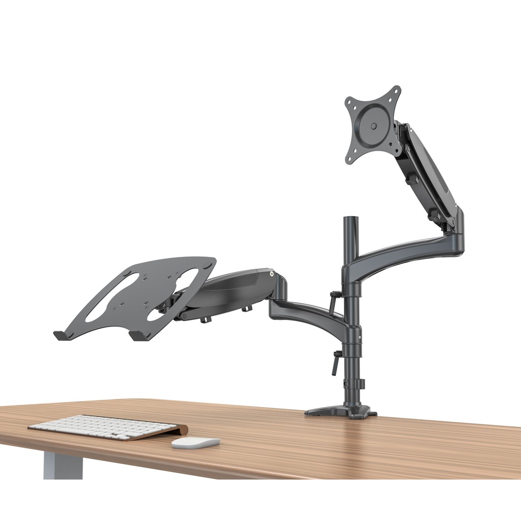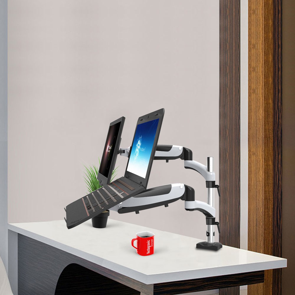 Dual Monitors OR 2 in1 Monitor & Laptop Mount Stand with 2 Swing Arms for 15"-32" Monitors, Both De