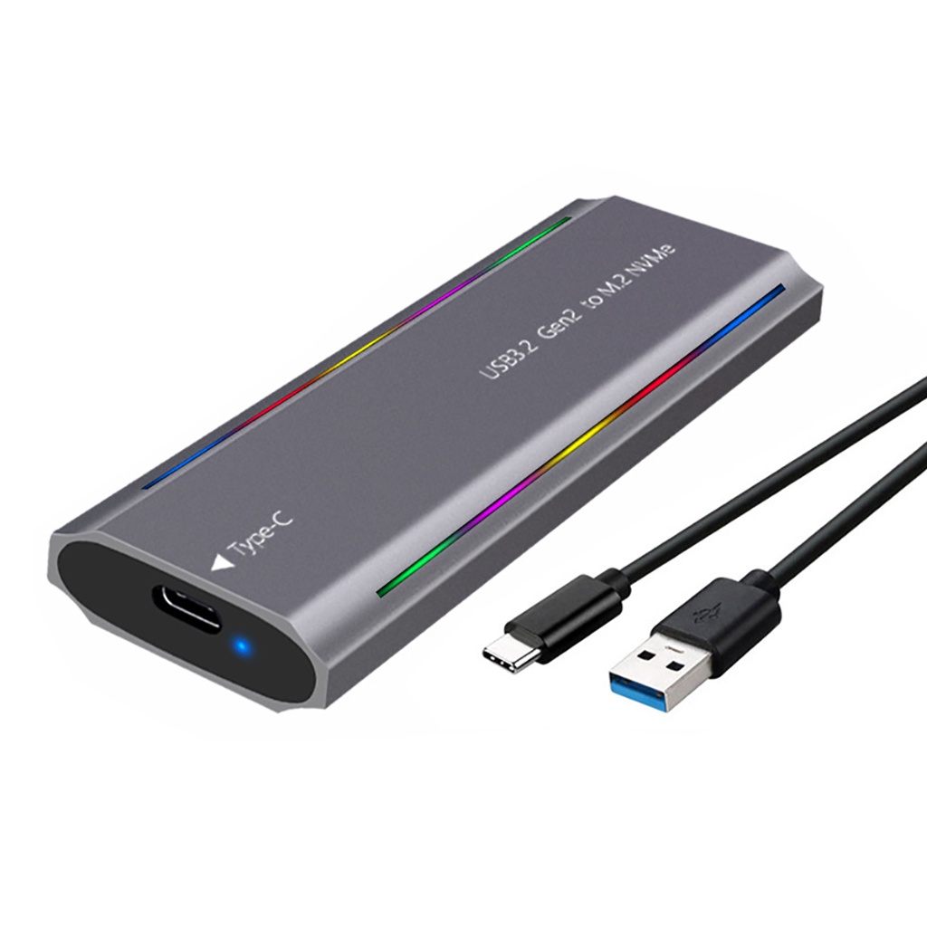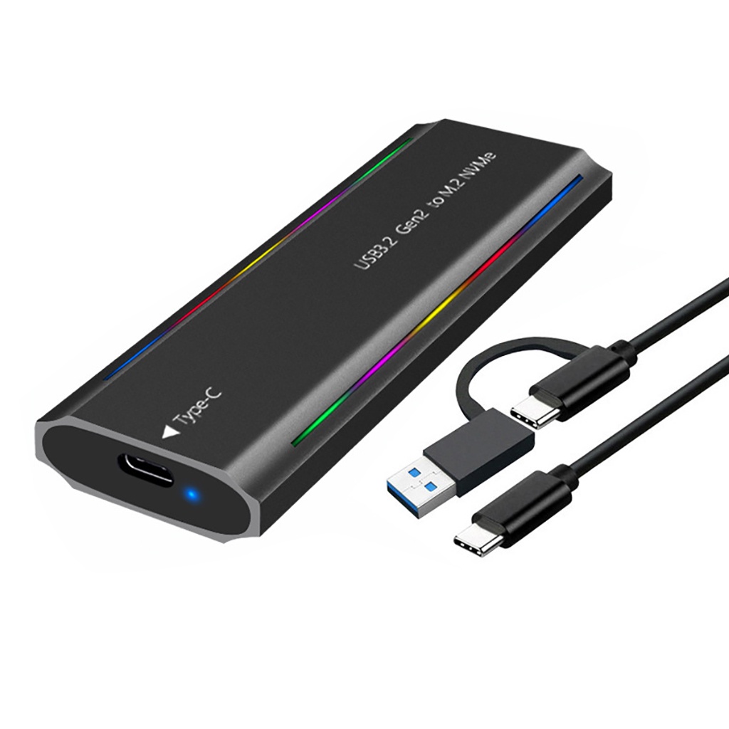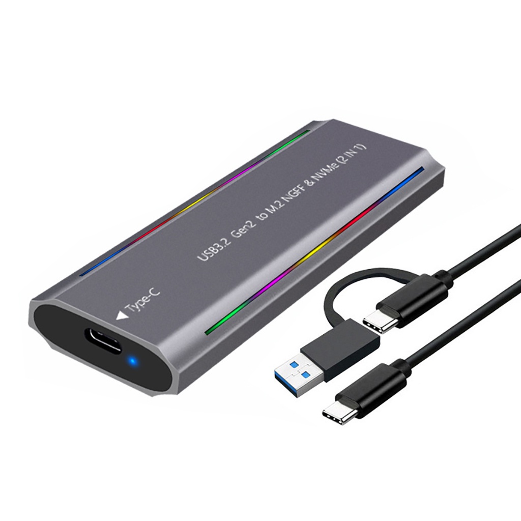 Dual Protocol External RGB SSD Enclosure for M.2 NVMe NGFF SATA 2230 2242 2260 2280 SSD Case 10Gbps HDD SSD Box to USB3.1 Type-C