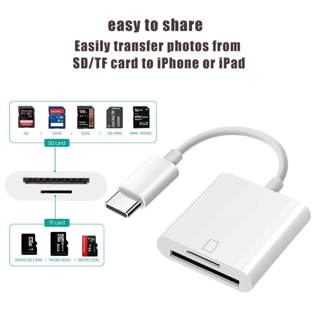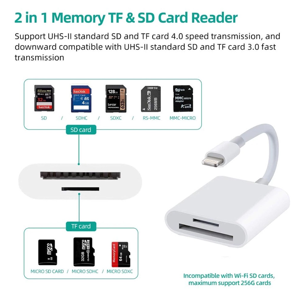 Dual Slot Memory Card Reader TF & SD 2 In 1 OTG Cable With Lightning Port Adapter