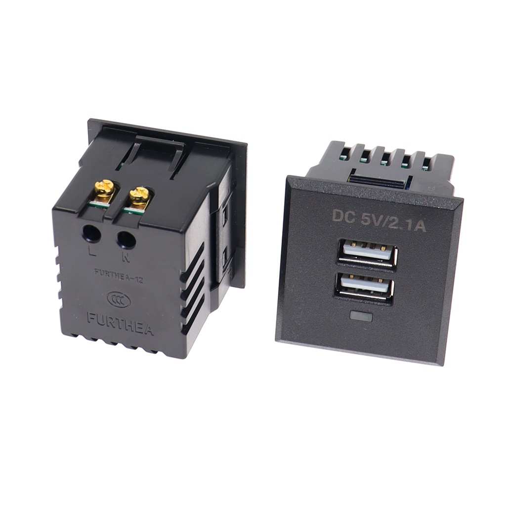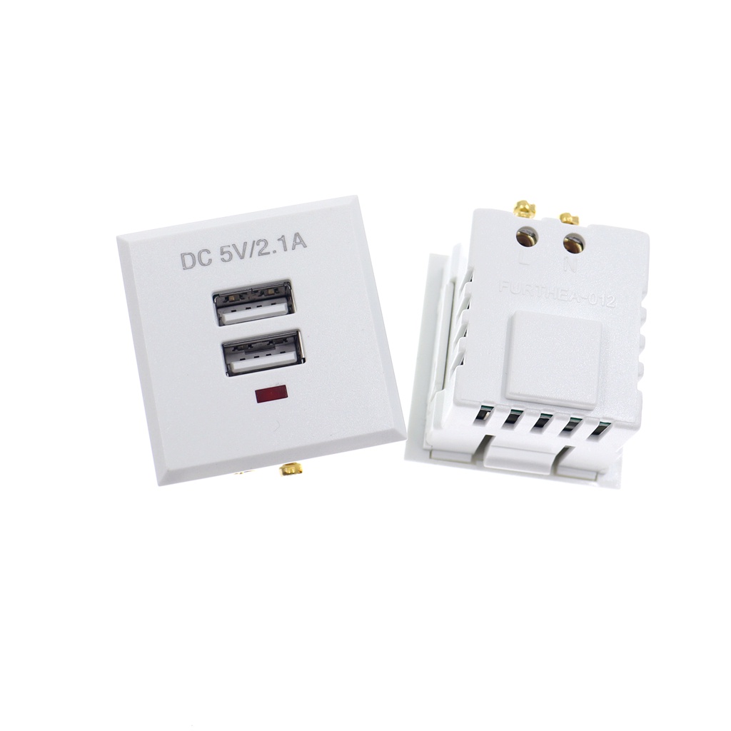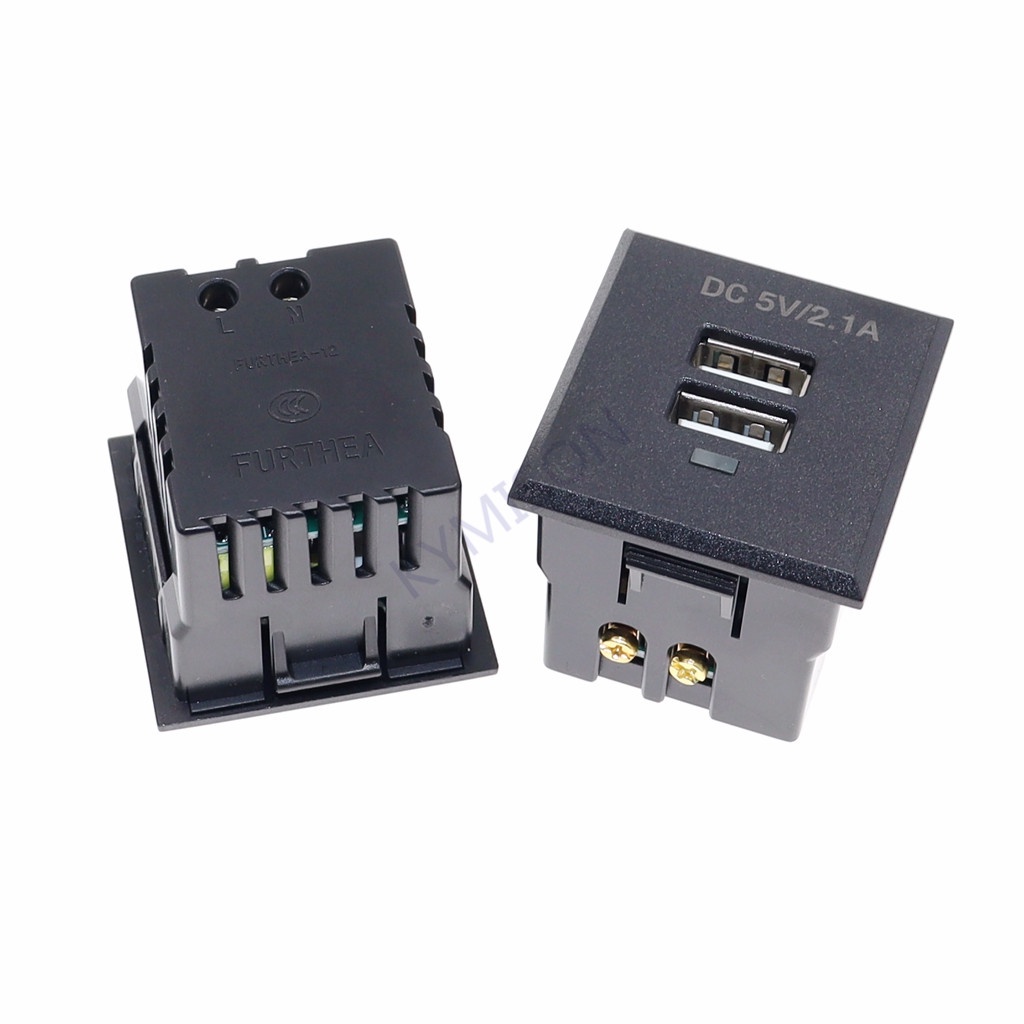 Dual USB AC Power Socket Embedded Dual USB Desktop Receptacle DC Charging Power Panel Module Outlet 5V 2.1A
