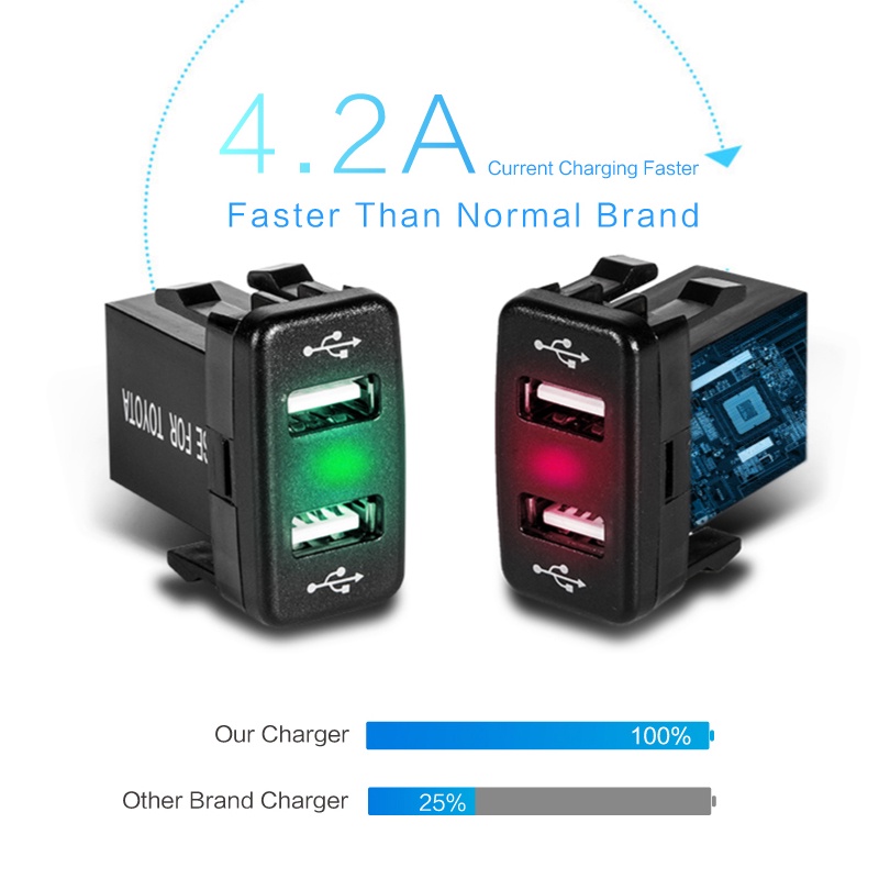 Dual USB Interior port plug Car Socket Charger 12-24V LED Car Accessories Power Adapter For Toyota 2.1A For Mobile Phone