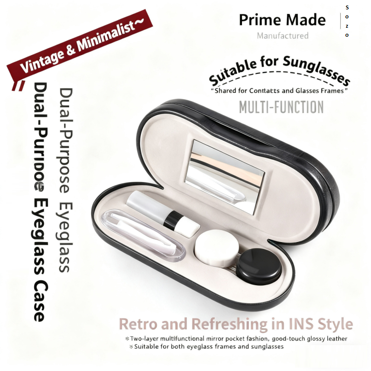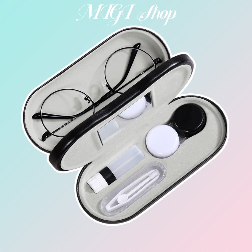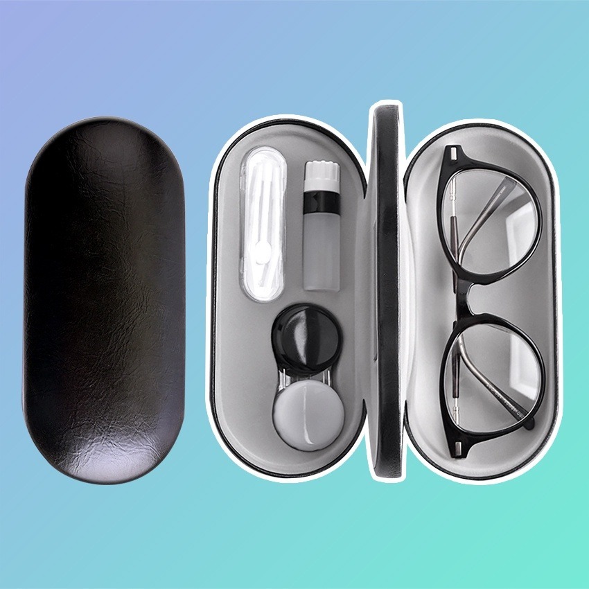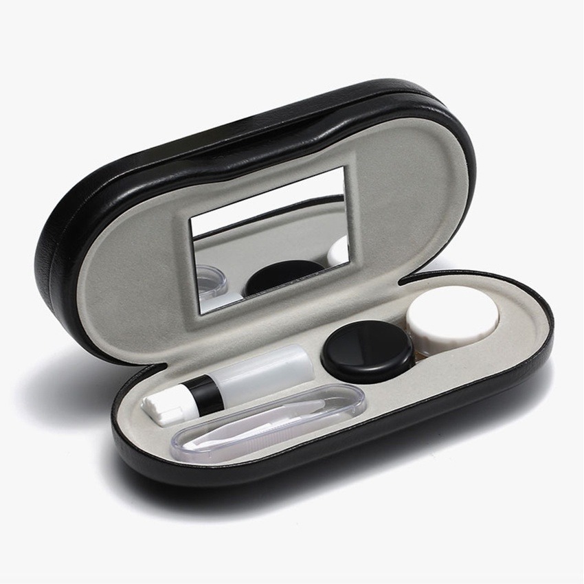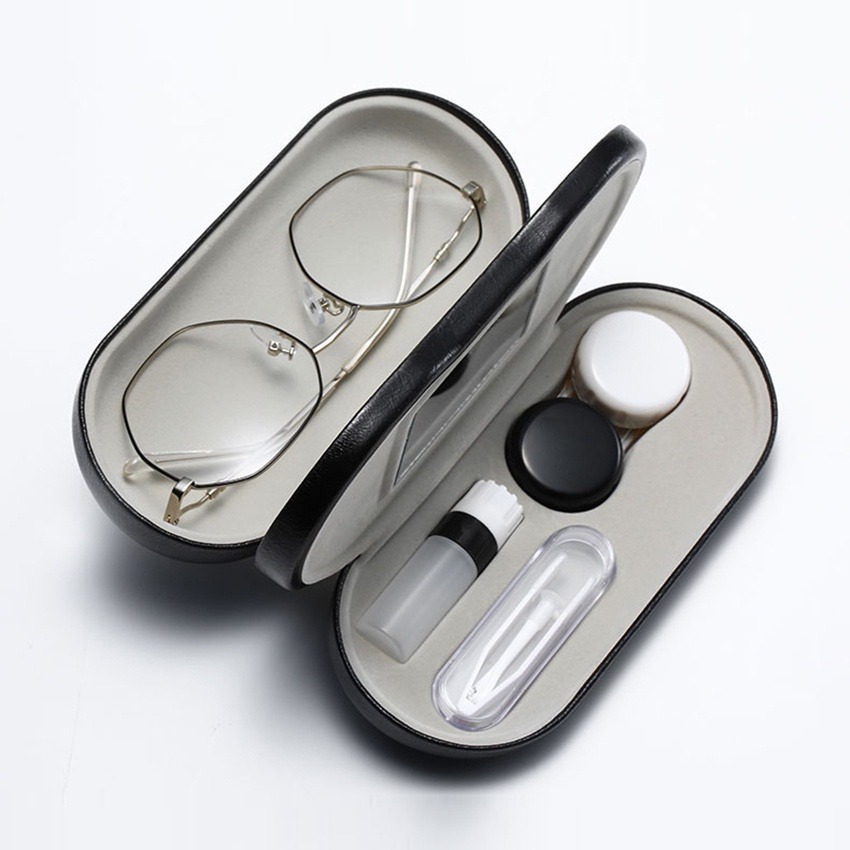 Dual Use Eyeglass contact lense case kit hrad box with Mirror Tweezers Solution Bottle