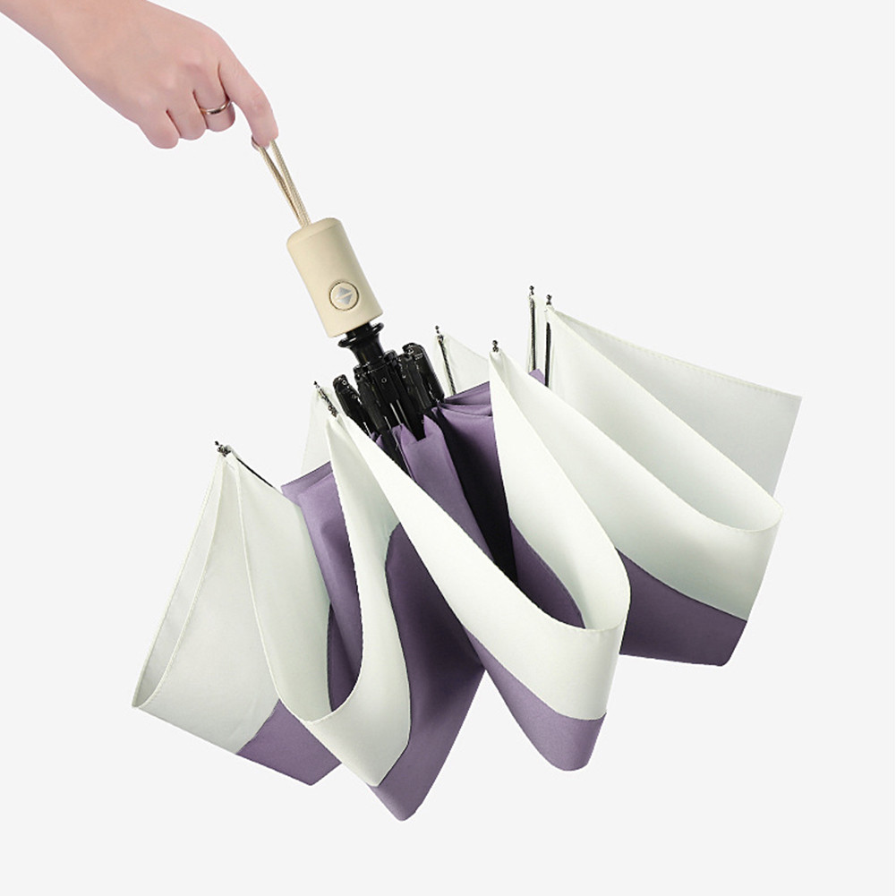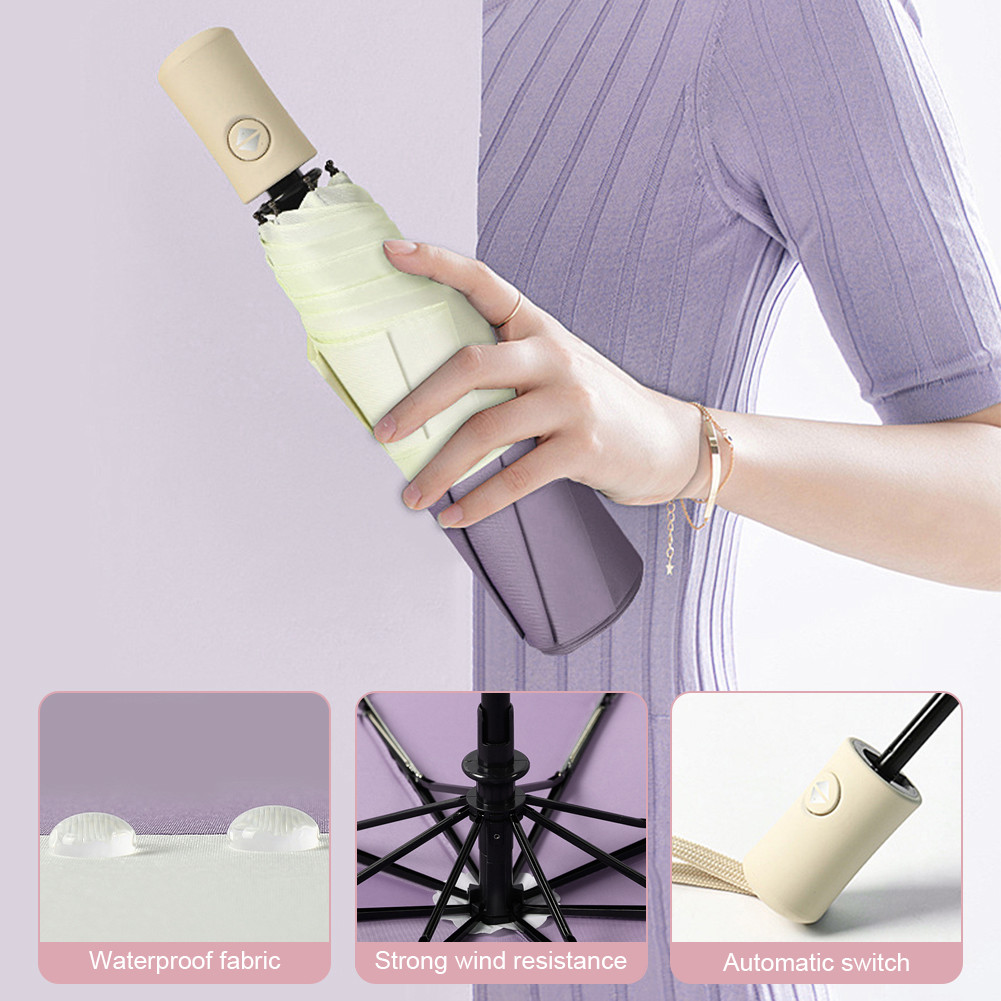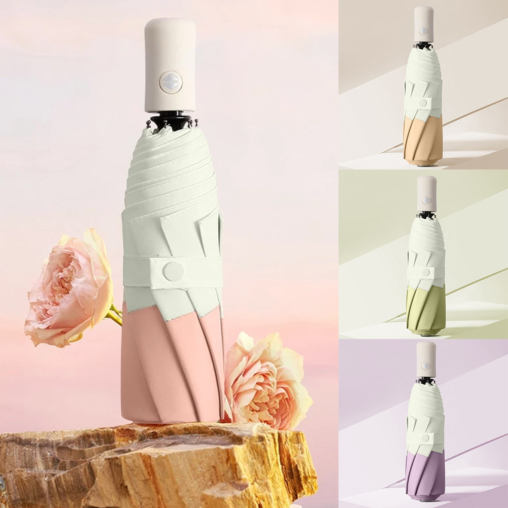 Dual Use Tri Fold Color Splicing Outdoor 8 Ribs Camping Automatic Umbrella