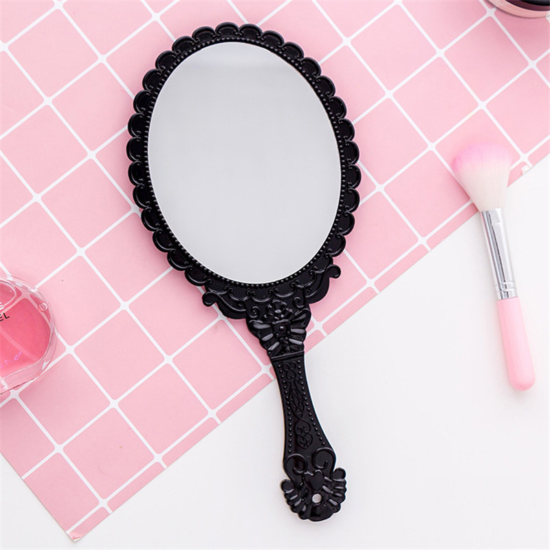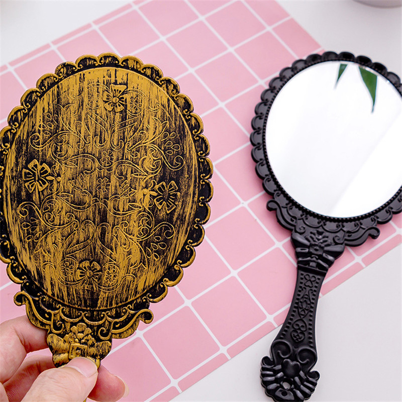 Dualswish Vintage Pattern Carved Handheld Vanity Makeup Hand Mirror Handle Cosmetic Compact Mirror
