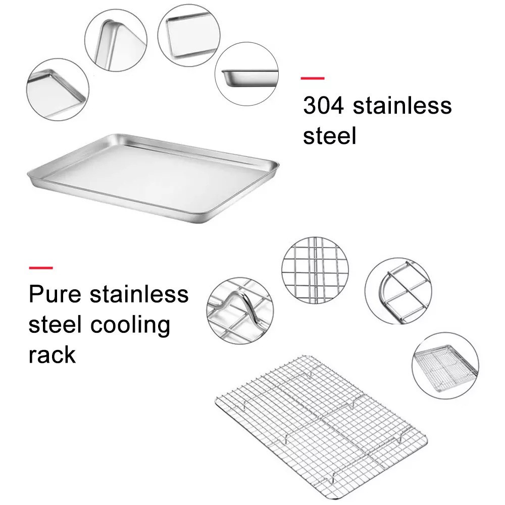 DuduMart Stainless Steel Baking Tray With Removable Cooling Rack Set Non-stick Chips Basket Grill