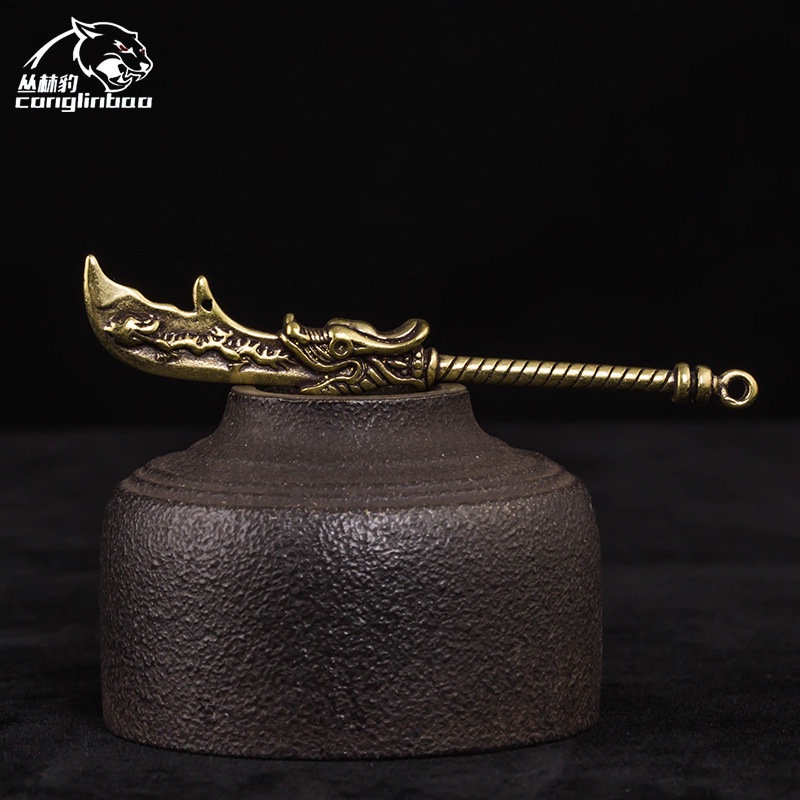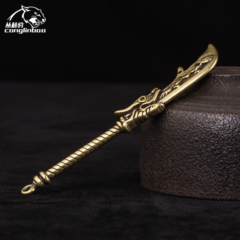 Duke guan long dao guan yu dragon crescent moon blade weapons retro brass key chain pendant