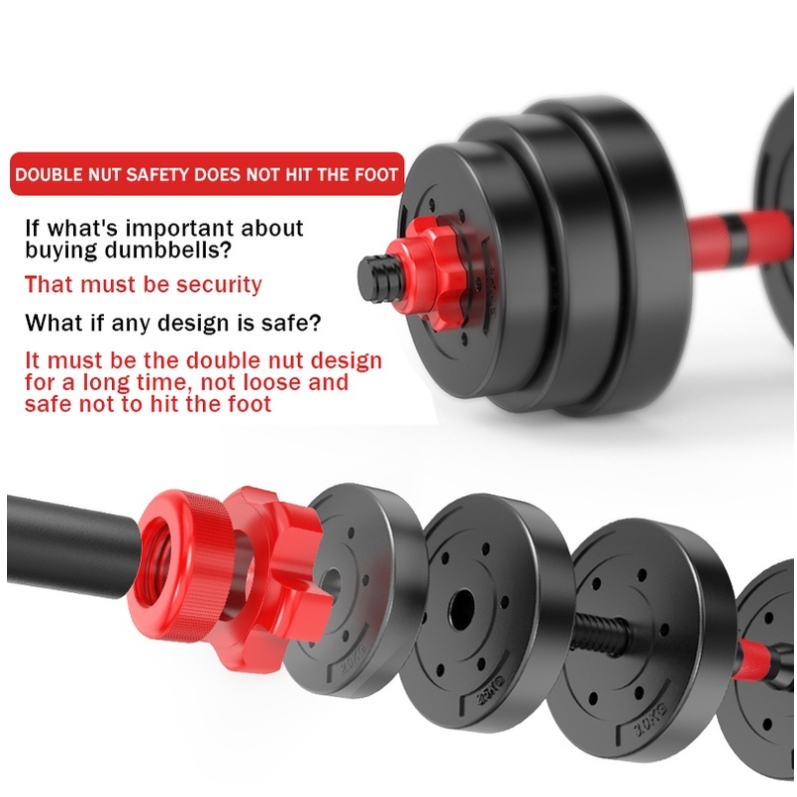 Dumbbells Pair Detachable 10/20/30/40kg Dumbbell Set PVC Gym Equipment 2 in 1 Barbell