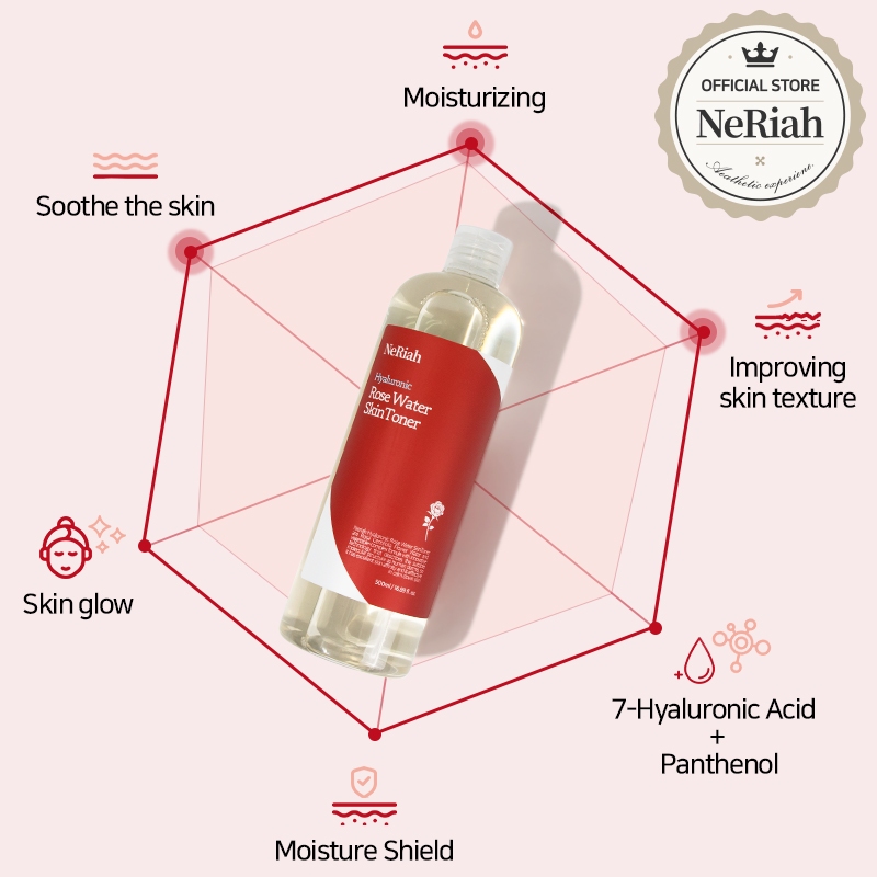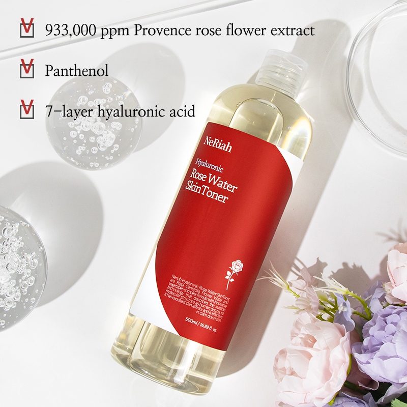 [Neriah] Hyaluronic Rose Water Skin Toner 500ml Pure Rosewater 93% Calming Skin Hydrating