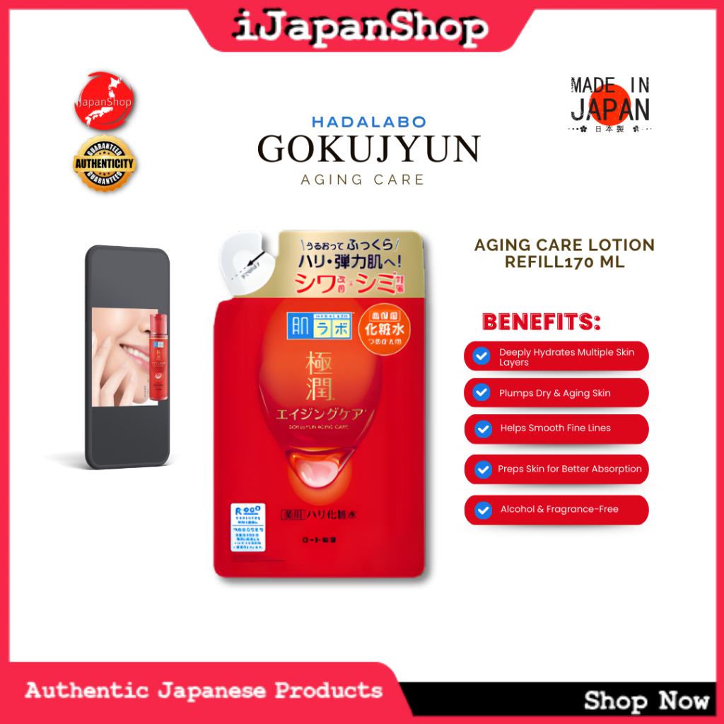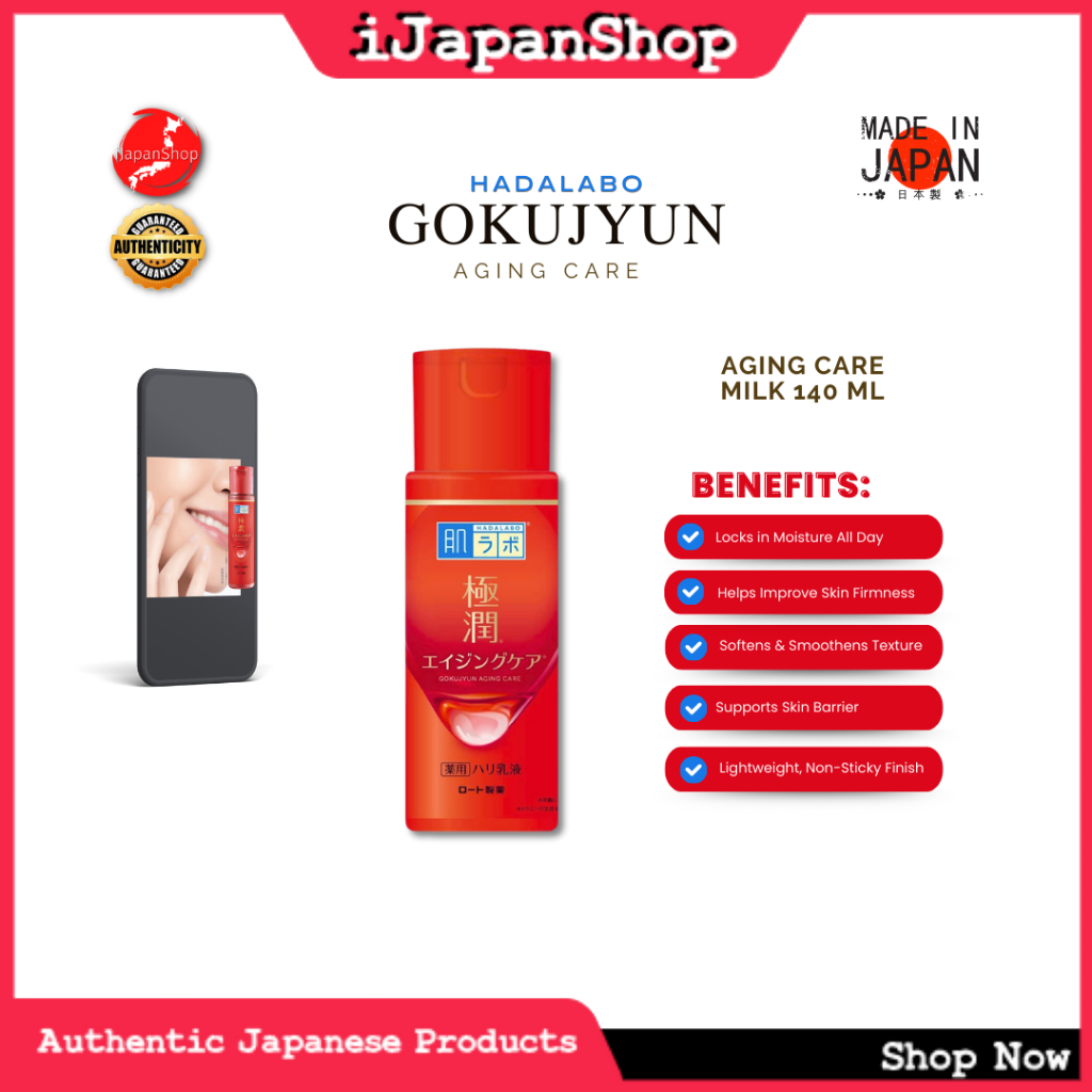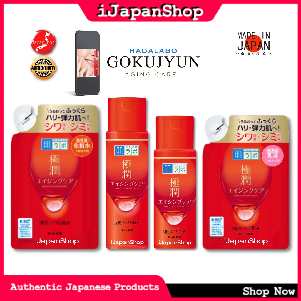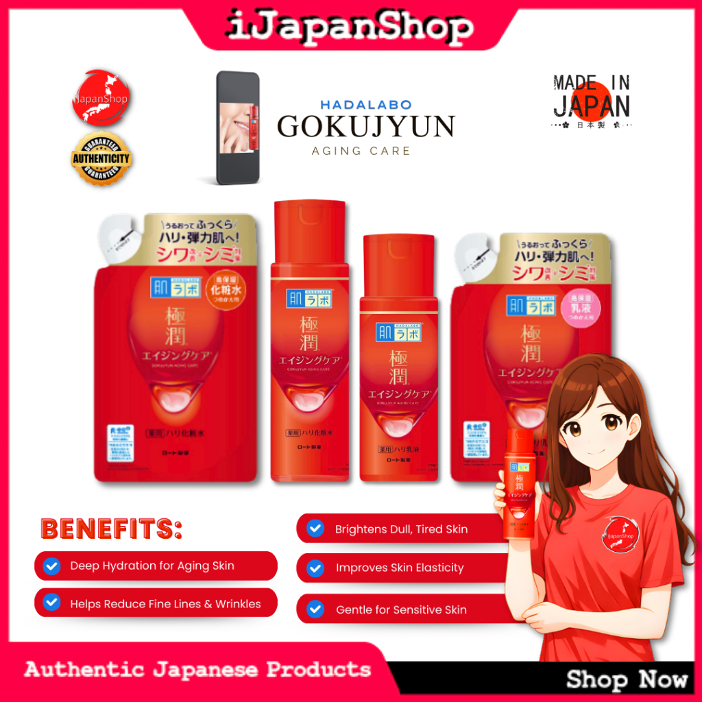 Hada Labo Gokujyun Aging Care Anti-Aging Toner & Milk | Japanese Skincare for Dry & Aging Skin