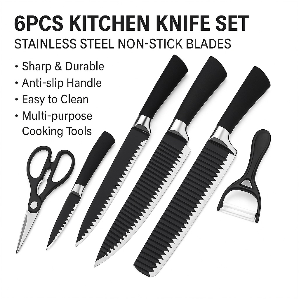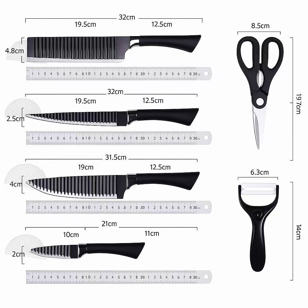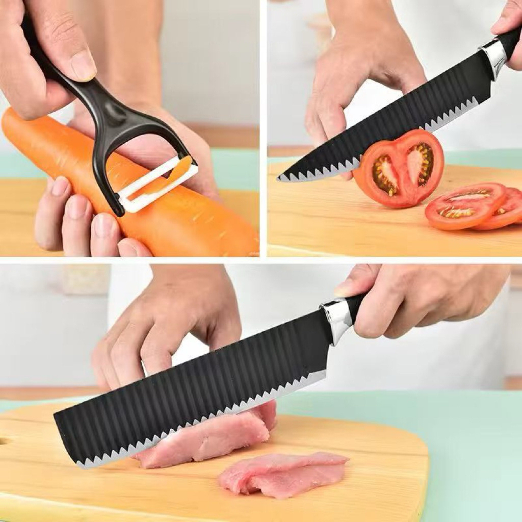 WJM 6PCS Black/Mixed Color Kitchenwares knife Vegetable Fruit Meat Chopping Knife Set Kitchen Knife