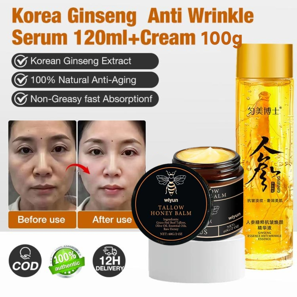 Korean Ginseng Peptide Essence Serum Water 120ml Beef Tallow Cream 100g Anti Wrinkle Anti Aging